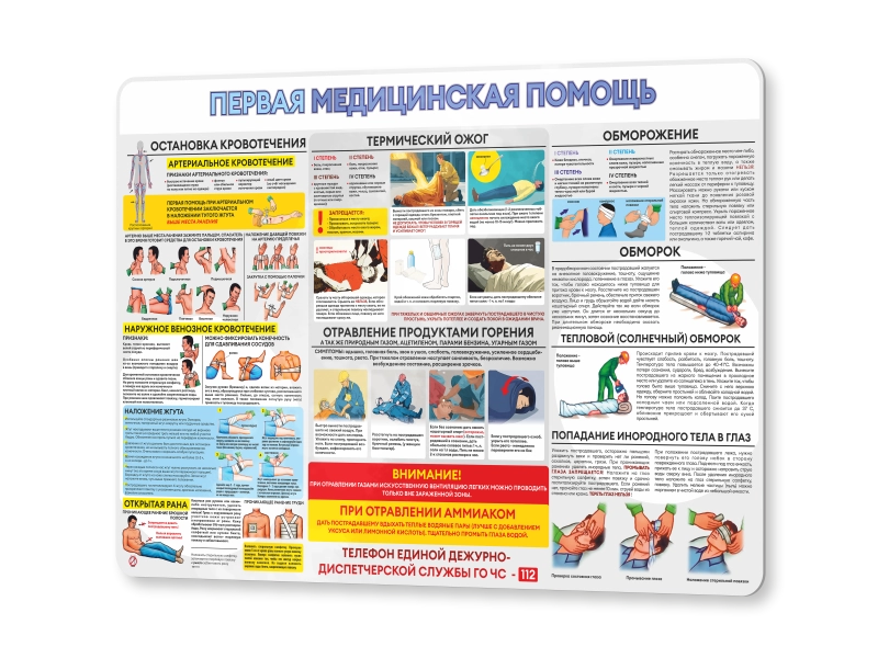 Компания «НижСтенд» производит, реализует красочные информационные стенды из материалов высокого качества на разные темы, включая первая медицинская помощь. Мы работаем на собственном современном оборудовании, поэтому четко планируем производство и соблюдаем сроки поставки. Для заказа настенной конструкции позвоните нам по телефону 8 800 222 53 98 или напишите нам. Наши консультанты уточнят некоторые детали и оформят заявку. Остались вопросы по материалам, техническим характеристикам, цене или доставке? Обращайтесь, ответим на все.