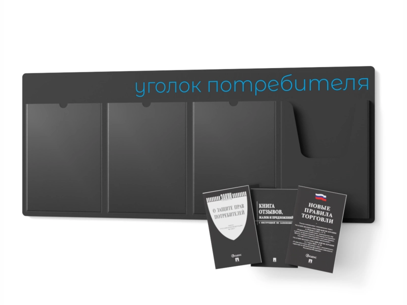 Уголок потребителя – это настенная конструкция, которая должна иметь крупную надпись название и быть расположена на видном месте. На ней обязательно размещаются: