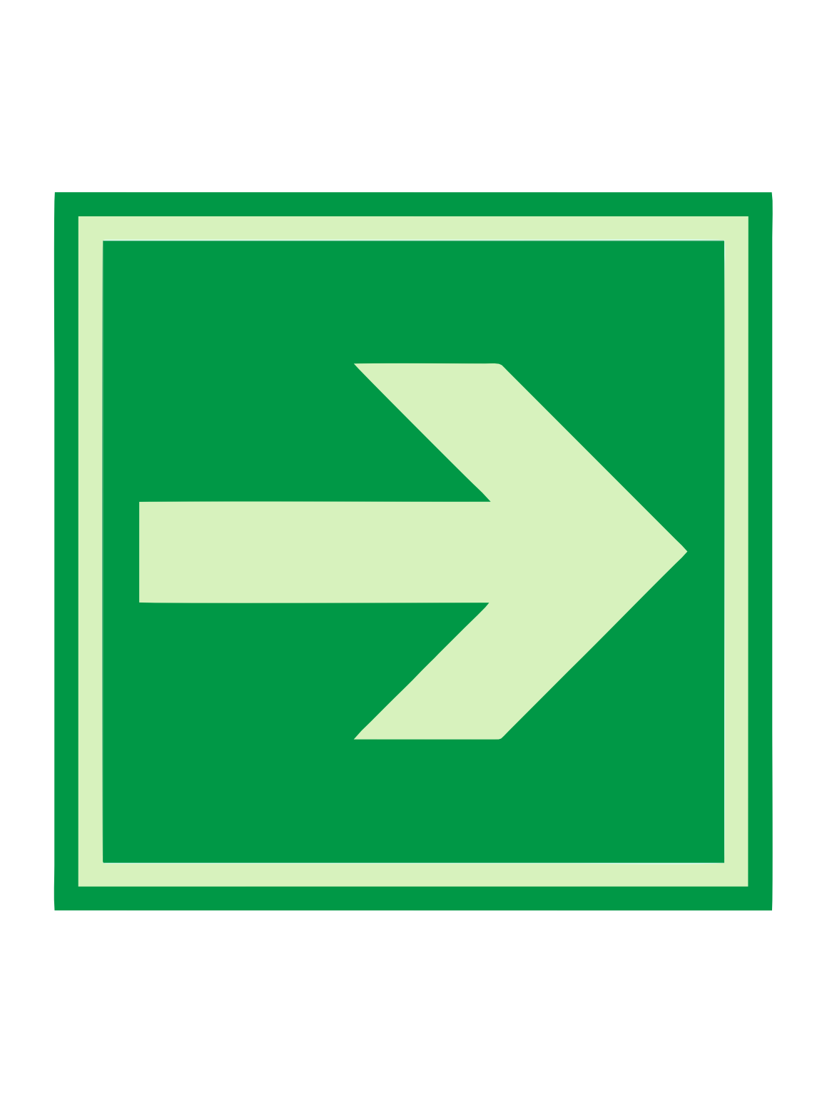 Фотолюминесцентный знак безопасности Е 02-01 «Направляющая стрелка» предназначен для указания направления движения к ближайшему эвакуационному выходу. Используется как элемент навигации в системах эвакуации зданий и помогает ориентироваться в условиях ограниченной видимости, задымления или отключения электроэнергии.