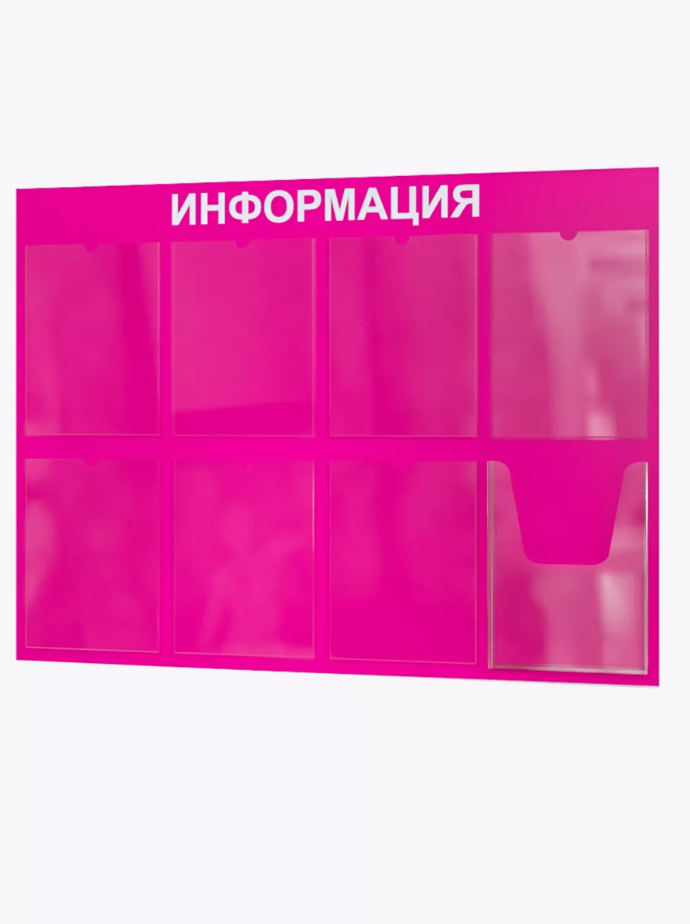 Стенд информация с 7 плоскими карманами и 1 объемным карманом выполнен из пластика ПВХ 3мм + уф-печать. Доску для информации можно разместить в офисе, организации, школе. детском саду или в магазине. Настенный информационный уголок с карманами устойчив к влаге и выгоранию. При необходимости стенд для информации можно мыть. Информационная доска крепится на специальный крепкий двусторонний скотч, который идет в комплекте. Информационный стенд настенный attache можно крепить к любой ровной поверхности. Уголок информация имеет размер 1000х740 мм. Офисный стенд на стену мы предлагаем в широкой цветовой гамме, благодаря чему, можно подобрать стенды для информации подходящие именно Вашему интерьеру. Восемь карманов размера А4 – идеальный вариант. чтобы разместить всю важную информацию. Будем признательны, если после покупки оставите нам отзыв! С уважением, магазин Нижстенд.