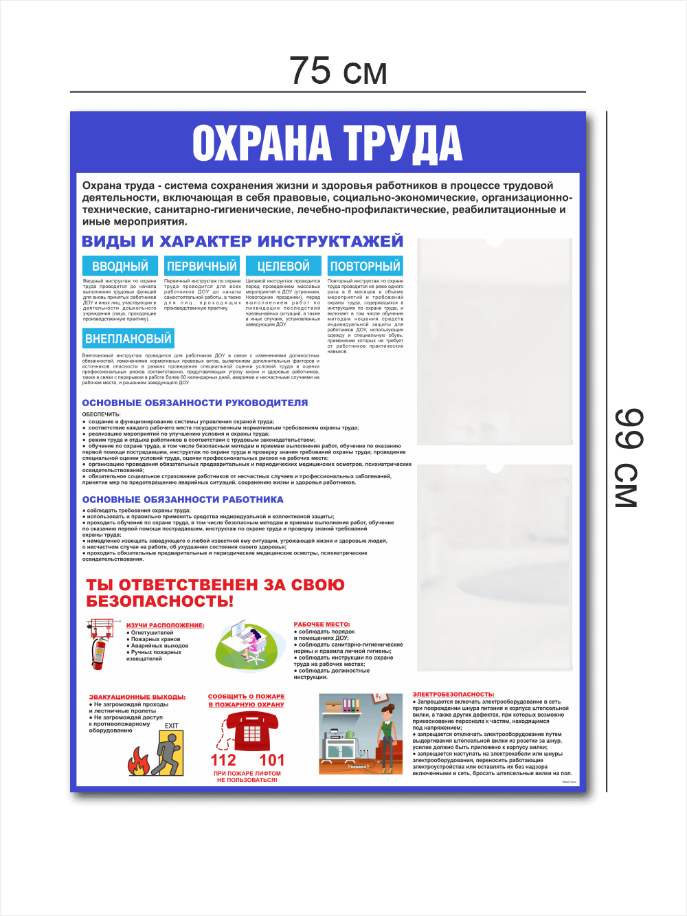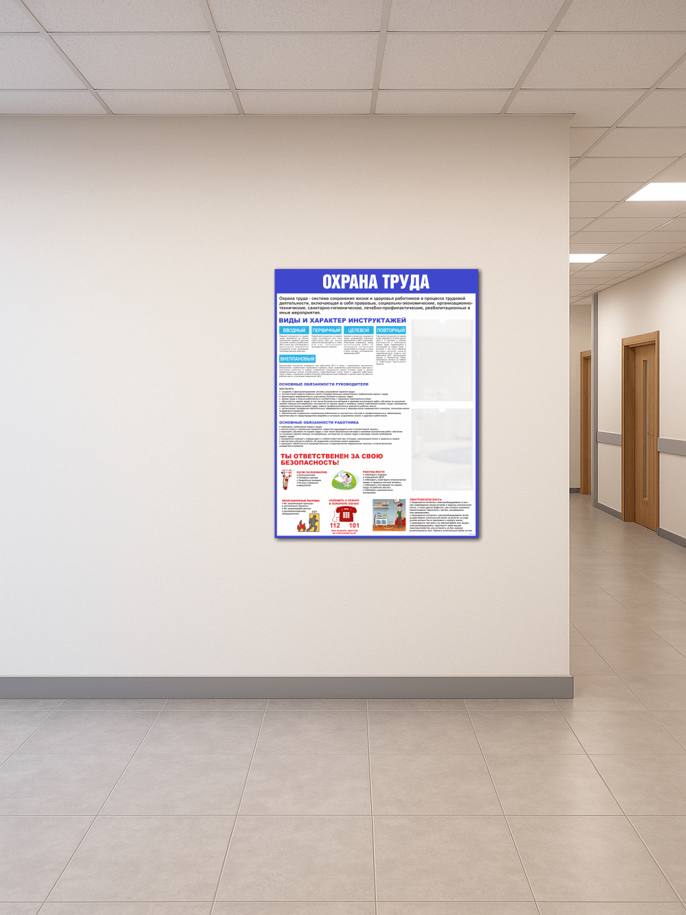 Настенный стенд по охране труда является незаменимым помощником в любом учреждении и обеспечит безопасность ваших сотрудников. Информационный стенд с двумя плоскими вертикальными карманами А4 служит для размещения актуальной и полезной информации о правилах безопасности на рабочем месте и предотвращении несчастных случаев. Материал конструкции стенда: ПВХ пластик белый – прямая УФ печать. Лаконичный и современный дизайн гармонично впишется в любой интерьер.