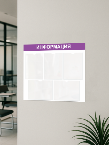 Такой настенный информационный стенд станет отличным решением для оформления уголка потребителя, расписания уроков, объявлений для сотрудников, навигации по зданию и других задач.