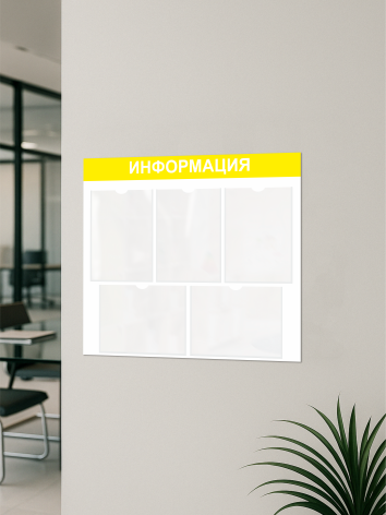 Такой настенный информационный стенд станет отличным решением для оформления уголка потребителя, расписания уроков, объявлений для сотрудников, навигации по зданию и других задач.
