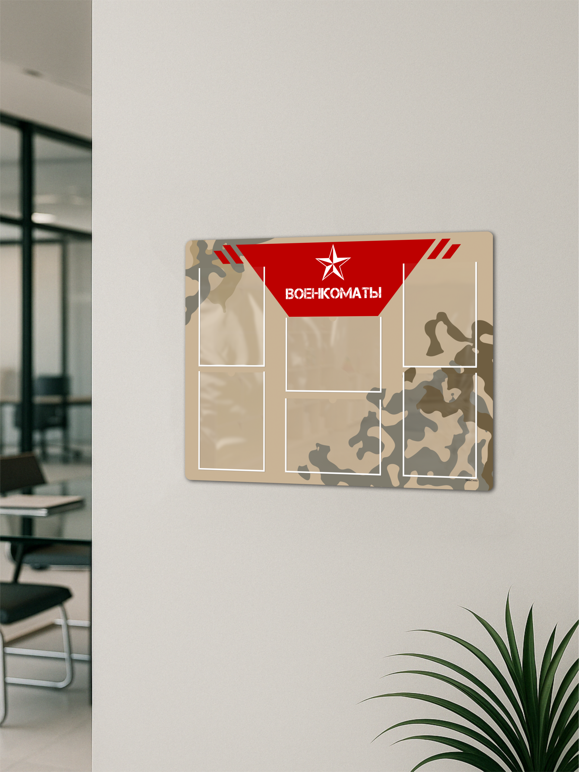 Стенд Военкоматы 99х75 см от бренда Нижстенд – идеальное решение для офиса и предприятий. Качественный и современный стенд с 4 вертикальными и 2 горизонтальными плоскими карманами А4 изготовлен из прочного пластика ПВХ толщиной 3 мм, что обеспечивает долговечность и устойчивость к повреждениям. На обратной стороне стенда – двусторонняя клейкая лента для монтажа стенда на стену без сверления. Стенд никогда не выгорит, также его можно протирать от загрязнений и пыли влажной тряпкой или салфетками без спирта. Благодаря своей компактности и удобству использования, этот стенд станет отличным дополнением к вашему учебному или рабочему процессу. Информация, размещённая на товаре, носит справочно-информационный характер и не является официальным разъяснением требований законодательства.