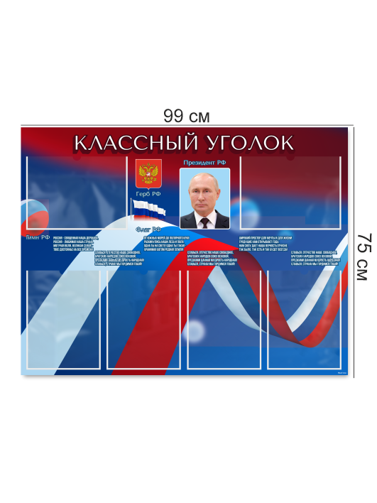 - Прочный и долговечный материал – стенд изготовлен из качественного ПВХ 3 мм, который не боится влаги и механических повреждений, а также сохраняет яркость цветов
