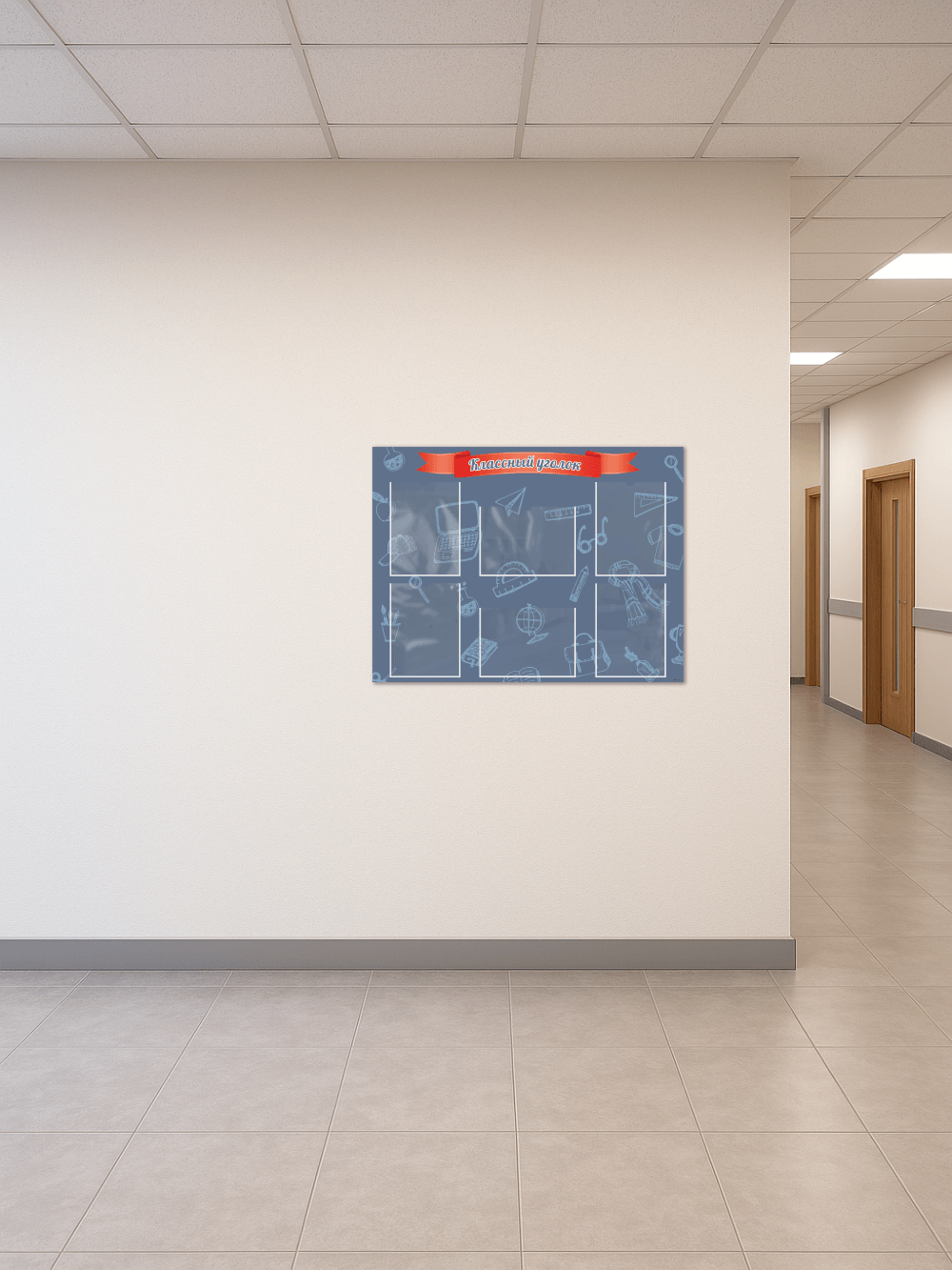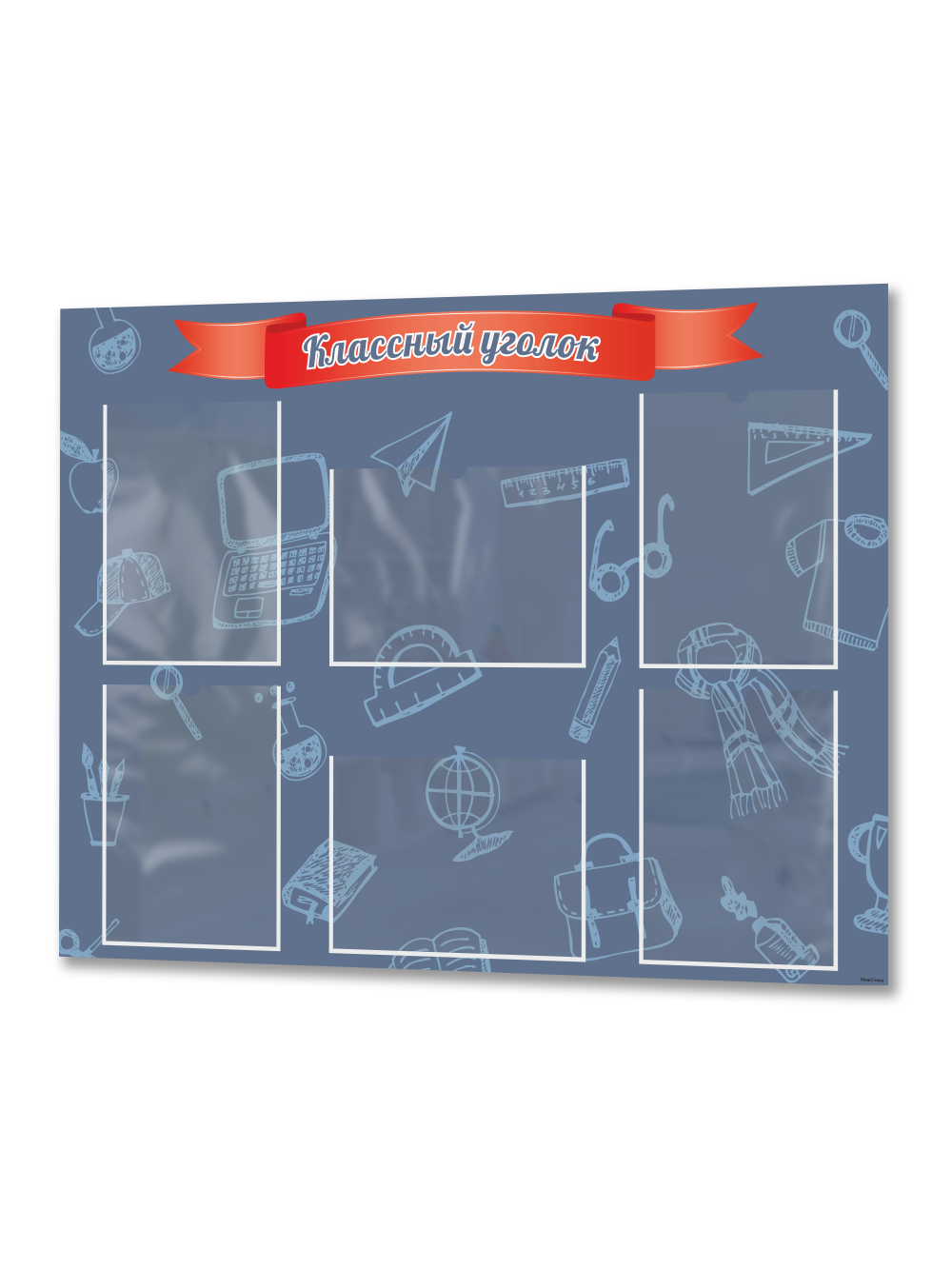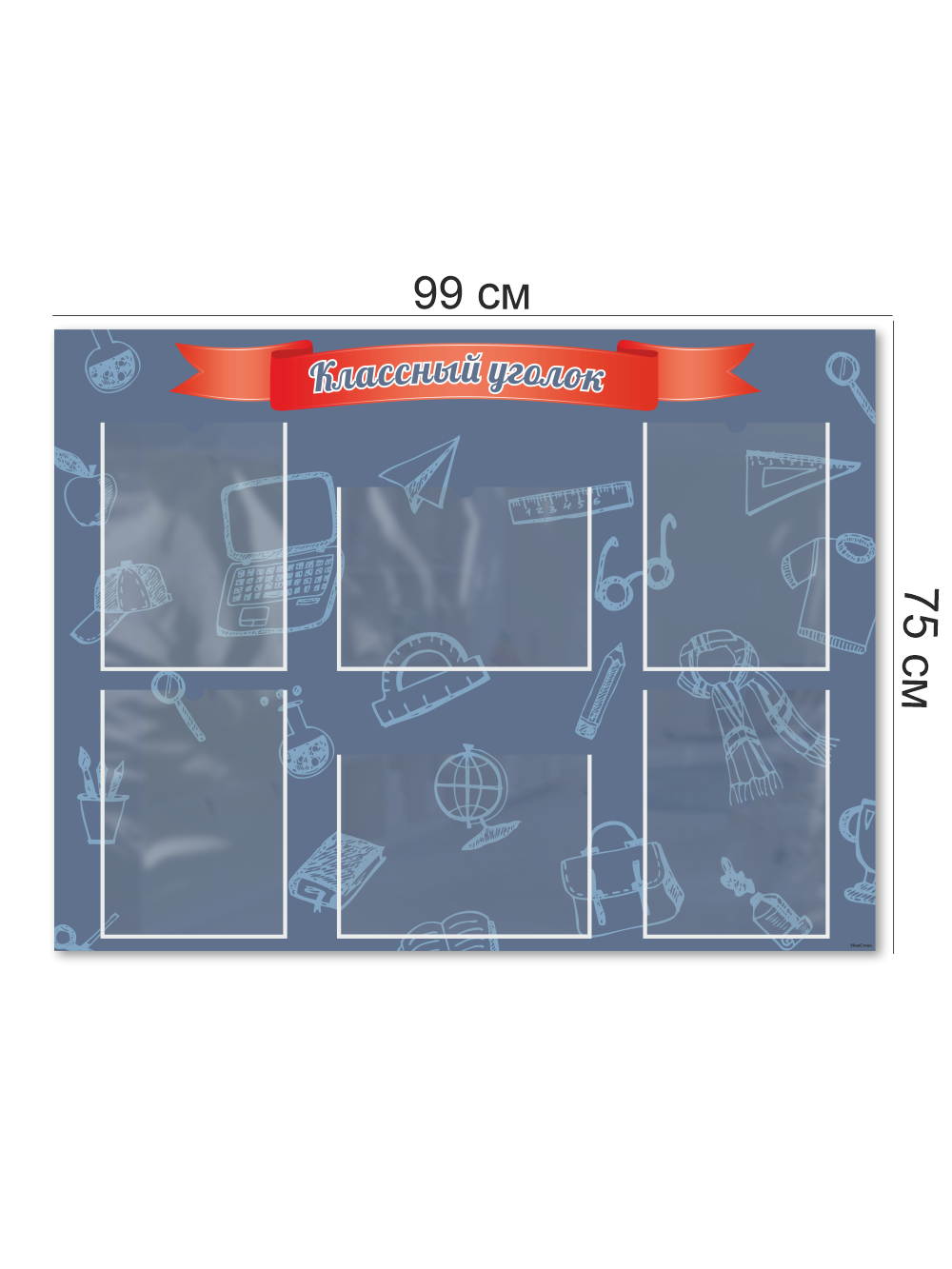 Классный уголок размером 99×75 см – это идеальный аксессуар для оформления школьного класса. На стенде расположены 6 карманов формата A4, в которые можно вставить важную информацию для учеников, родителей или учителей. Стенд выполнен из качественного и прочного материала с двусторонней клейкой лентой на обратной стороне, что позволяет легко и быстро установить его на стену без сверления и без помощи сторонних специалистов.