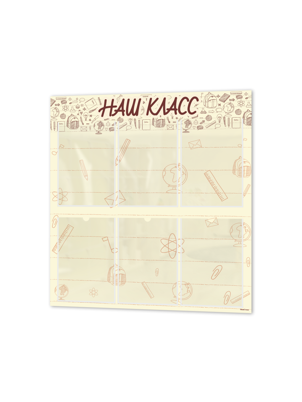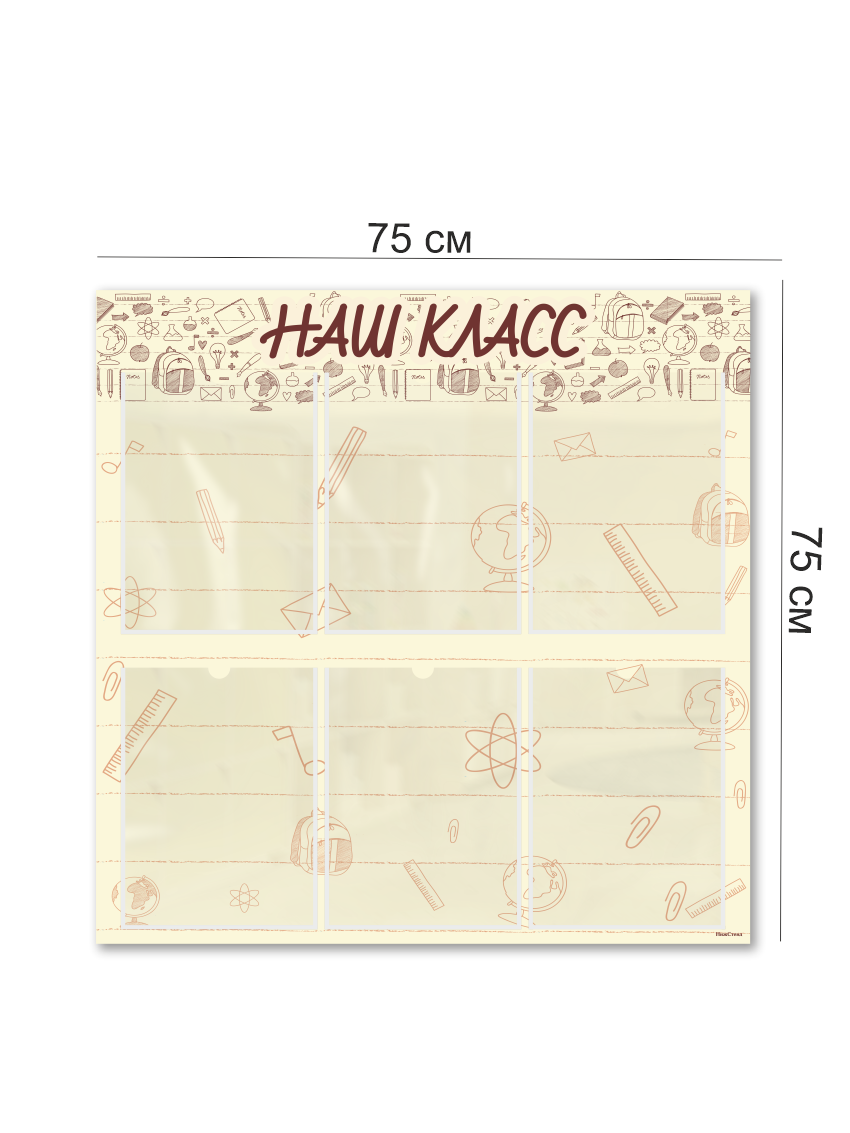 Классный уголок размером 75×75 см – это идеальный аксессуар для оформления школьного класса. На стенде расположены 6 карманов A4 в которые можно вставить важную информацию для учеников, родителей или учителей. Стенд выполнен из качественного и прочного материала с двусторонней клейкой лентой на обратной стороне, что позволяет легко и быстро установить его на стену без сверления и без помощи сторонних специалистов.