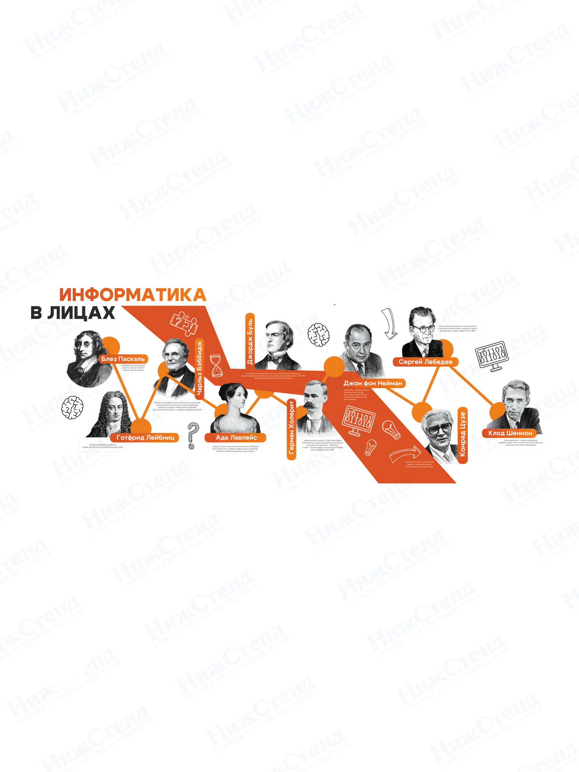 Комплексное оформление кабинета информатики «Информатика в лицах» представляет собой уникальный образовательный проект, направленный на привлечение внимания учащихся к выдающимся личностям в области информатики и программирования.