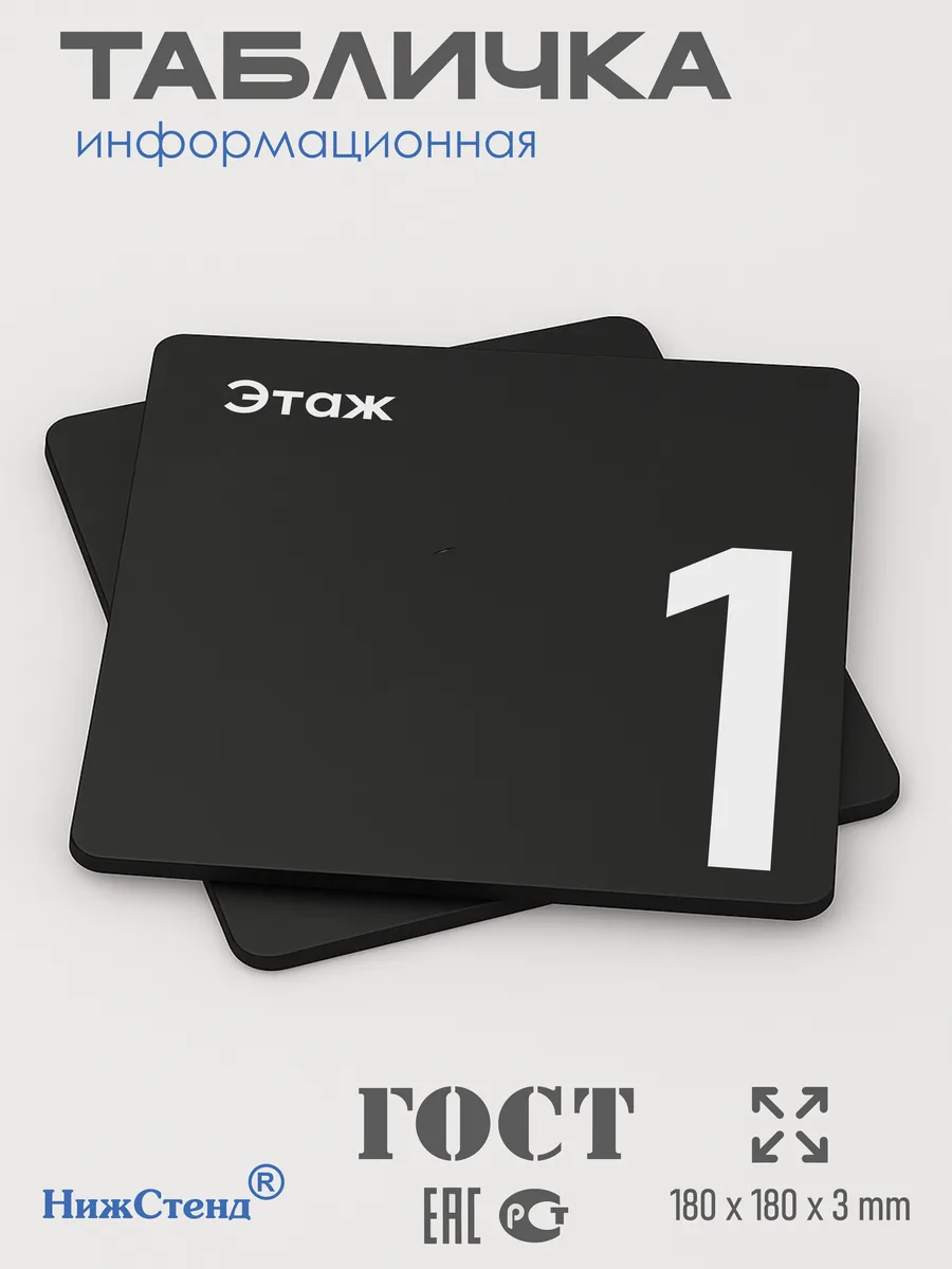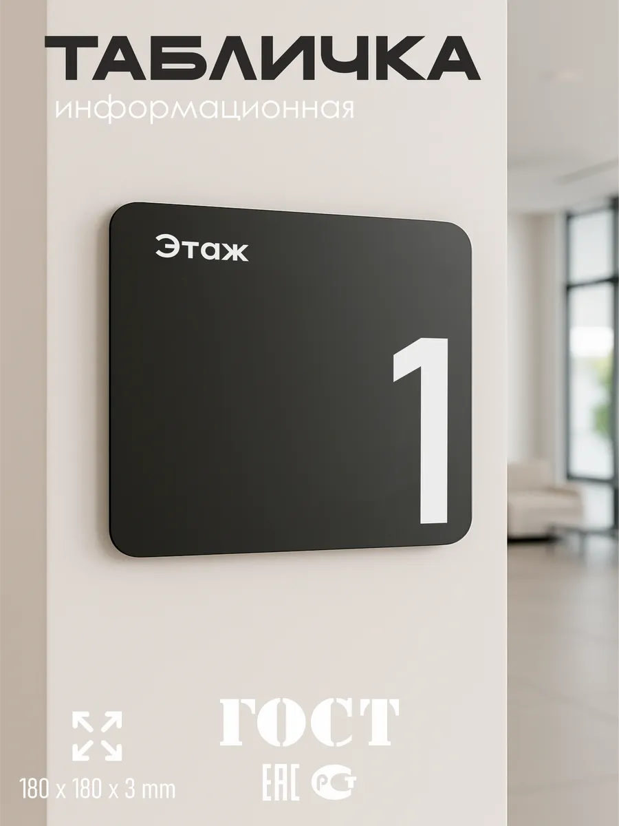 Табличка первый 1 этаж с двусторонней клейкой лентой для монтажа в комплекте директор интерьерная из черного ПВХ 3мм размером 18х18 см – это стильный и универсальный декоративный элемент, который поможет создать особую атмосферу в вашем интерьере. Изготовлена из высококачественного ПВХ, она обладает прочностью и долговечностью, что делает ее идеальным выбором для использования в различных помещениях. На табличке имеется возможность нанесения различных надписей, все представлены в ассортименте. Благодаря черному цвету и минималистичному дизайну, она легко сочетается с любым интерьером и стилем оформления. Эта табличка является универсальным решением для множества задач. Вы можете использовать ее для обозначения названий комнат, оповещения и предупреждения граждан. Она идеально подходит для дома, офиса, ресторана, гостиницы, в школу, в гос. учреждения, в клинику, в больницу, в фитнес клуб. В магазине представлены таблички с надписями: мужской туалет, женский туалет, офис, склад, место для курения, для персонала, курение запрещено, чистые бахилы, грязные бахилы, надевайте бахилы, женская раздевалка, мужская раздевалка, банкомат, бассейн, администрация, офис, буфет, камера хранения, прачечная, выключайте звуки телефона, туалет, комната матери и ребенка, вход, выход, генеральный директор, касса, информация, комната ожидания, не бросайте в унитаз туалетную бумагу и предметы гигиены, камера хранения, за оставленные вещи администрация ответственности не несет, ведется видеонаблюдение, выключайте звуки мобильного телефона