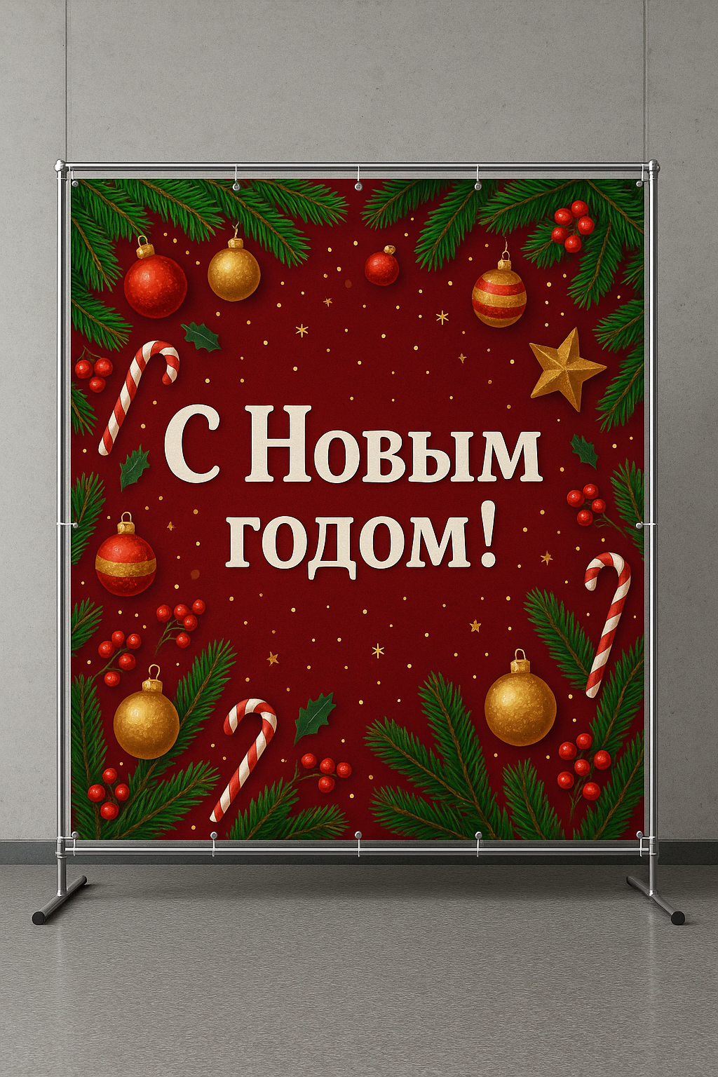 Праздничный пресс-волл с новогодним дизайном — идеальное решение для фотозоны, корпоративных мероприятий, офисов и торговых пространств.