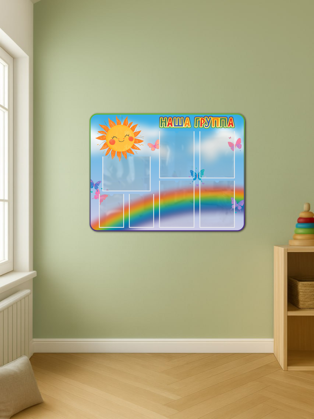 Стенд для детского сада «Наша группа» | 99×75 см | ПВХ 3 мм, карманы А4 и А5, УФ-печать