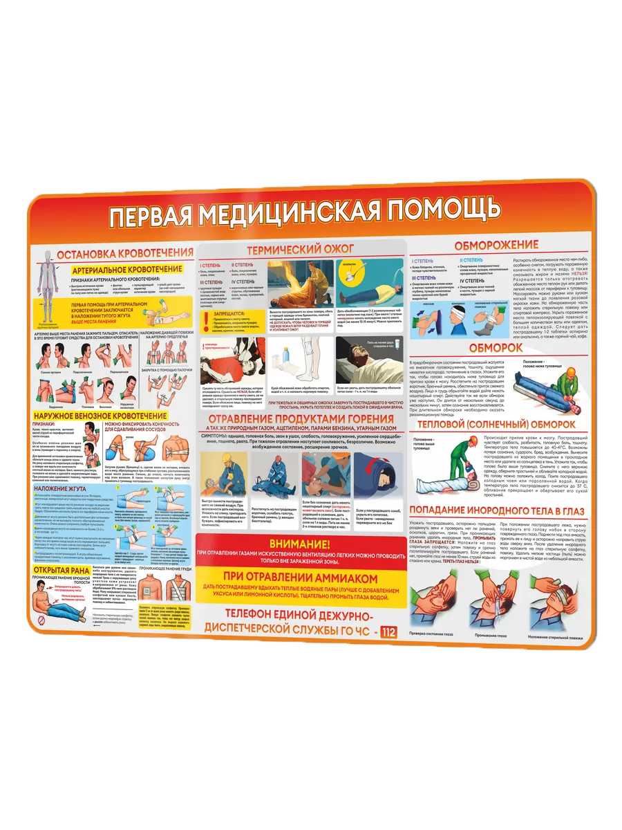 Стенд информационный Первая помощь – незаменимый помощник для обеспечения безопасности в различных учреждениях и общественных местах. Размер стенда – 75х50 см. Изготовленный из прочного и долговечного материала, стенд имеет удобный формат, позволяющий разместить всю необходимую информацию о правилах оказания первой помощи в доступной и понятной форме. На обратной стороне стенда – двусторонняя клейкая лента для монтажа стенда на стену без сверления. Яркие иллюстрации и четкий текст делают информацию легко воспринимаемой, а ламинированная поверхность защищает стенд от повреждений и выцветания. Стенд изготовлен из пластика ПВХ толщиной 3мм с применением технологии прямой УФ печати по пластику, что обеспечивает его прочность и долговечность, стенд никогда не выгорит, при необходимости стенд можно протирать от загрязнений влажными салфетками без спирта или тряпкой. Стенд станет надежным помощником в экстренных ситуациях, его установка в офисах, школах, спортивных залах, торговых центрах и других местах массового скопления людей поможет повысить уровень безопасности и подготовить посетителей к оказанию первой помощи в случае необходимости. Информация, размещённая на товаре, носит справочно-информационный характер и не является официальным разъяснением требований законодательства.