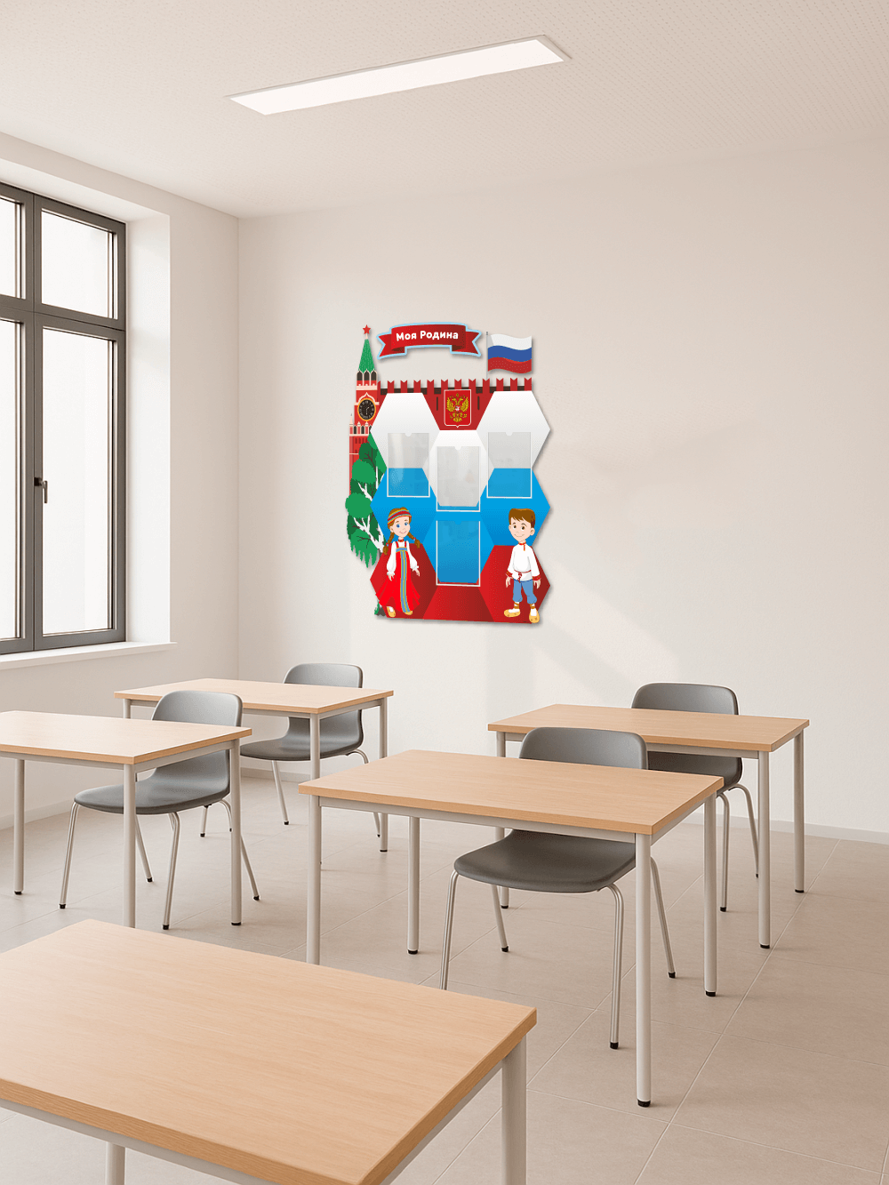 Стенд предназначен для школ, образовательных учреждений и организаций, обеспечивая визуальное представление государственной и региональной символики, способствуя патриотическому воспитанию и формированию уважительного отношения к историческому наследию страны.