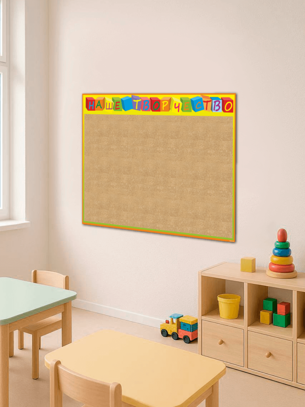 Стенд Наше творчество в садик с пробковым покрытием