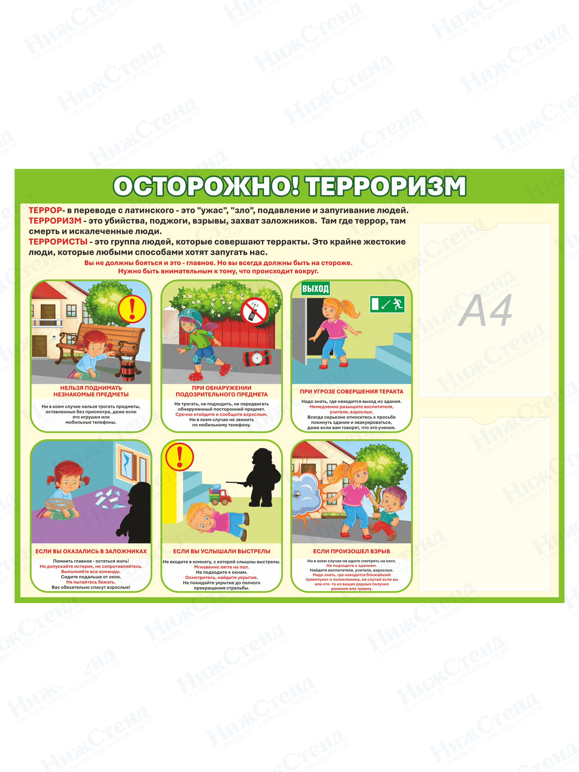 Стенд по антитеррористической безопасности — важный элемент информирования и повышения осведомленности учащихся, сотрудников и посетителей учебных заведений, предприятий и организаций о правилах поведения в чрезвычайных ситуациях. Такой стенд помогает повысить уровень безопасности и снизить риски, связанные с ЧС, обеспечивая своевременное информирование персонала и учащихся.