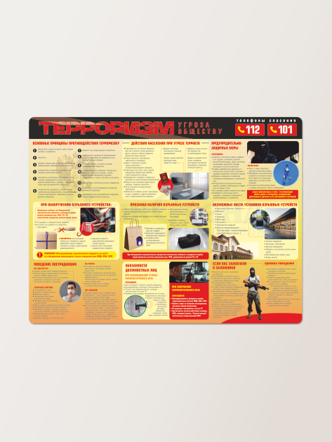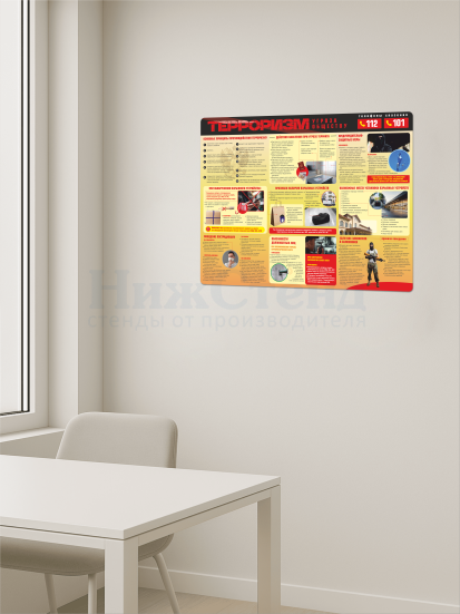 Настенный стенд противодействие терроризму станет незаменимым помощником в любом учреждении и обеспечит безопасность ваших сотрудников. Информационный стенд разработан с учетом всех требований и стандартов, предъявляемых к таким товарам, содержит актуальную и полезную информацию о правилах безопасности на рабочем месте, предотвращении несчастных случаев и оказании первой помощи.