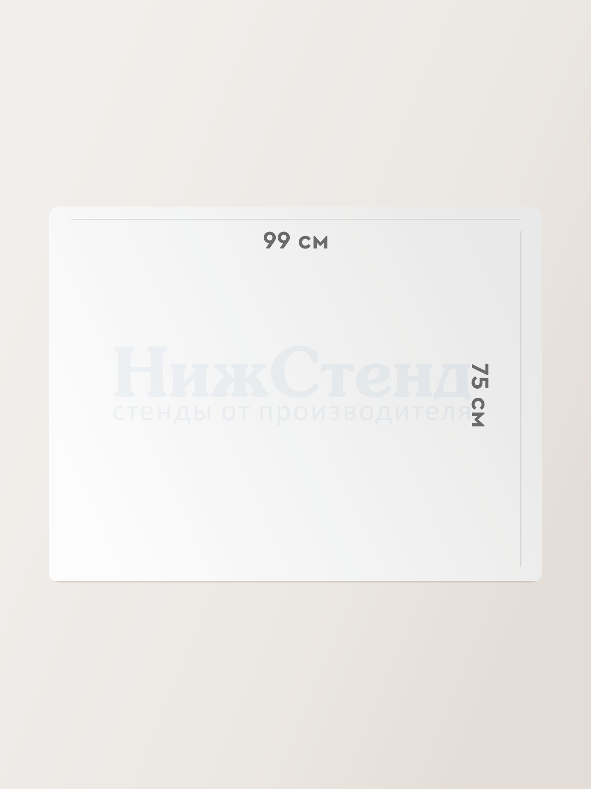 Размер стенда — 99×75 см, на обратной стороне стенда — двусторонняя клейкая лента для монтажа стенда на стену без сверления.