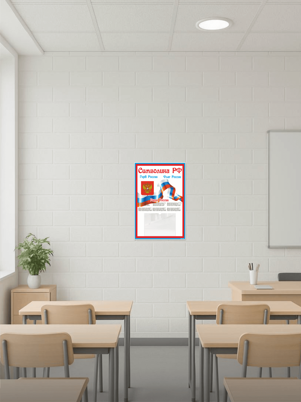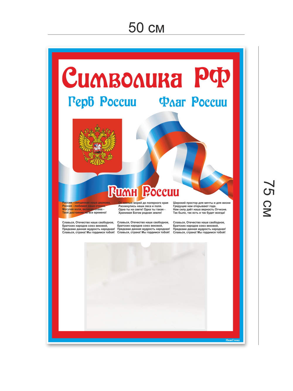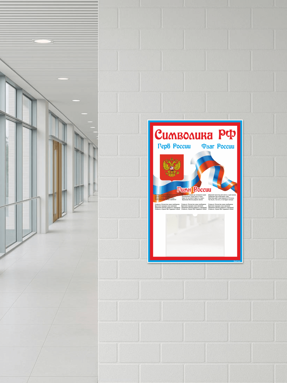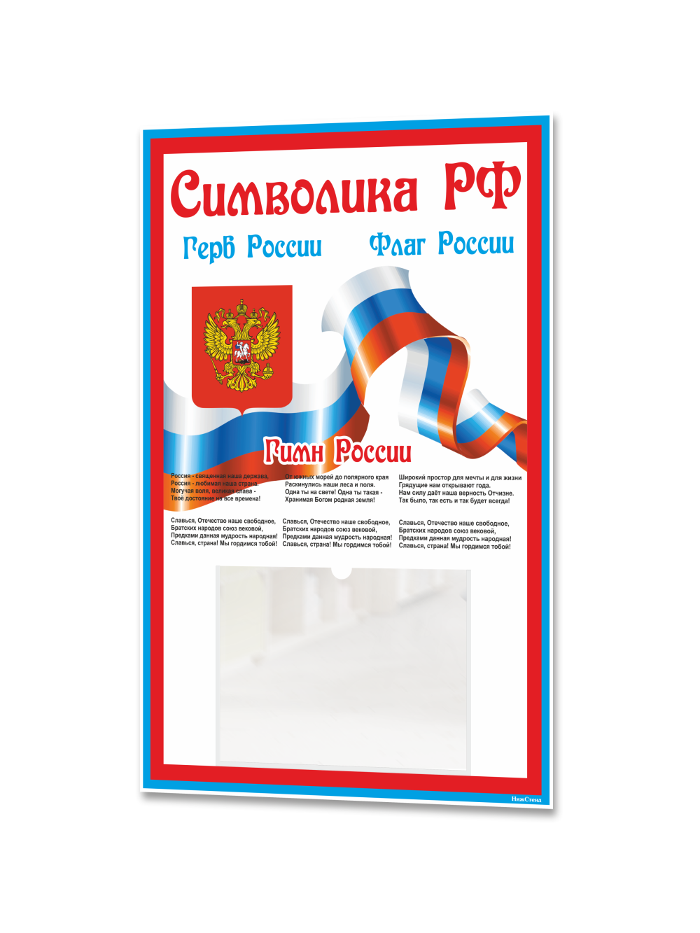 Символика Российской Федерации на наших стендах обязательно станет неотъемлемой частью Вашего интерьера. Стенд с символикой РФ можно повесить в любой кабинет и помещение, будь то школа, офис, кабинет или приемная.