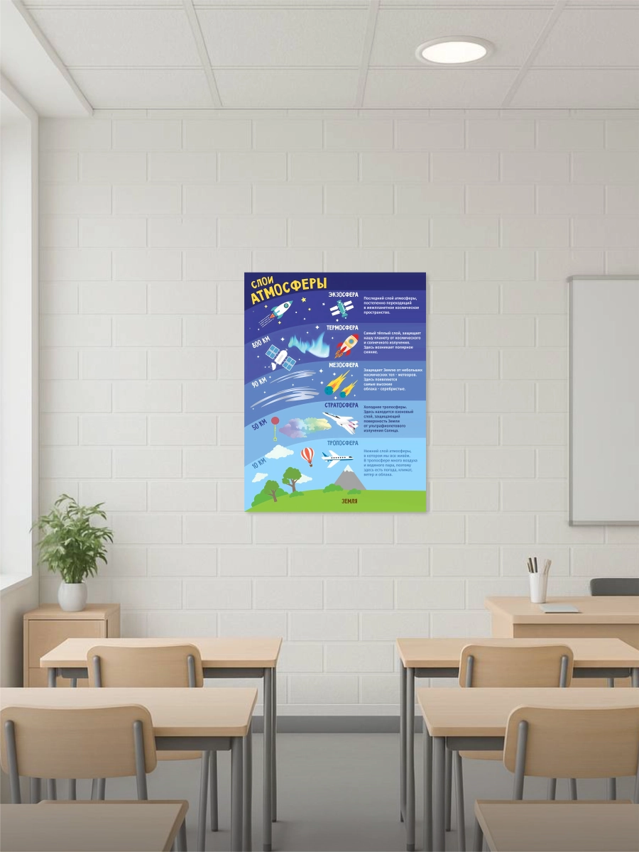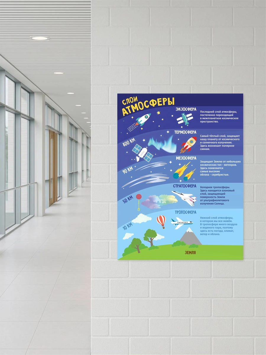 Стенд “Слои атмосферы” – это наглядное пособие, предназначенное для изучения строения атмосферы Земли в учебных заведениях. Он поможет школьникам и студентам лучше понять, какие слои образуют атмосферу, их характеристики и влияние на жизнь на планете.