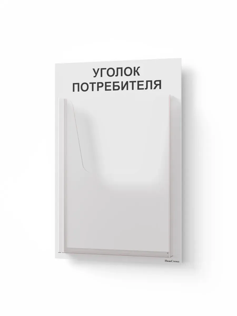 Уголок потребителя с документами 2025 года | Компактный стенд 18×28 см | Объёмный карман А5 | Без сверления | НижСтенд
