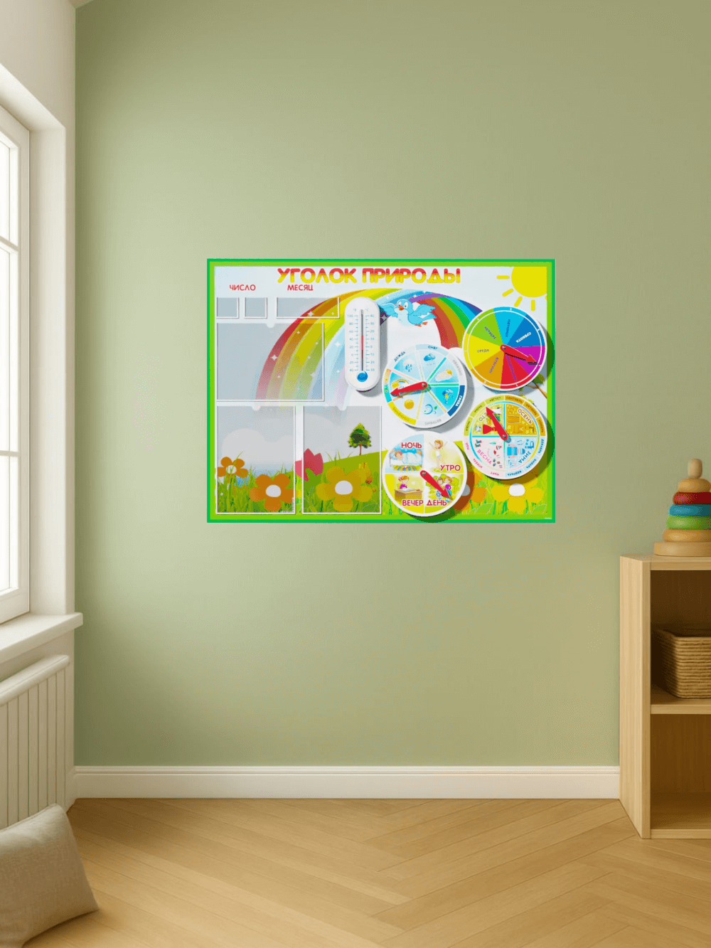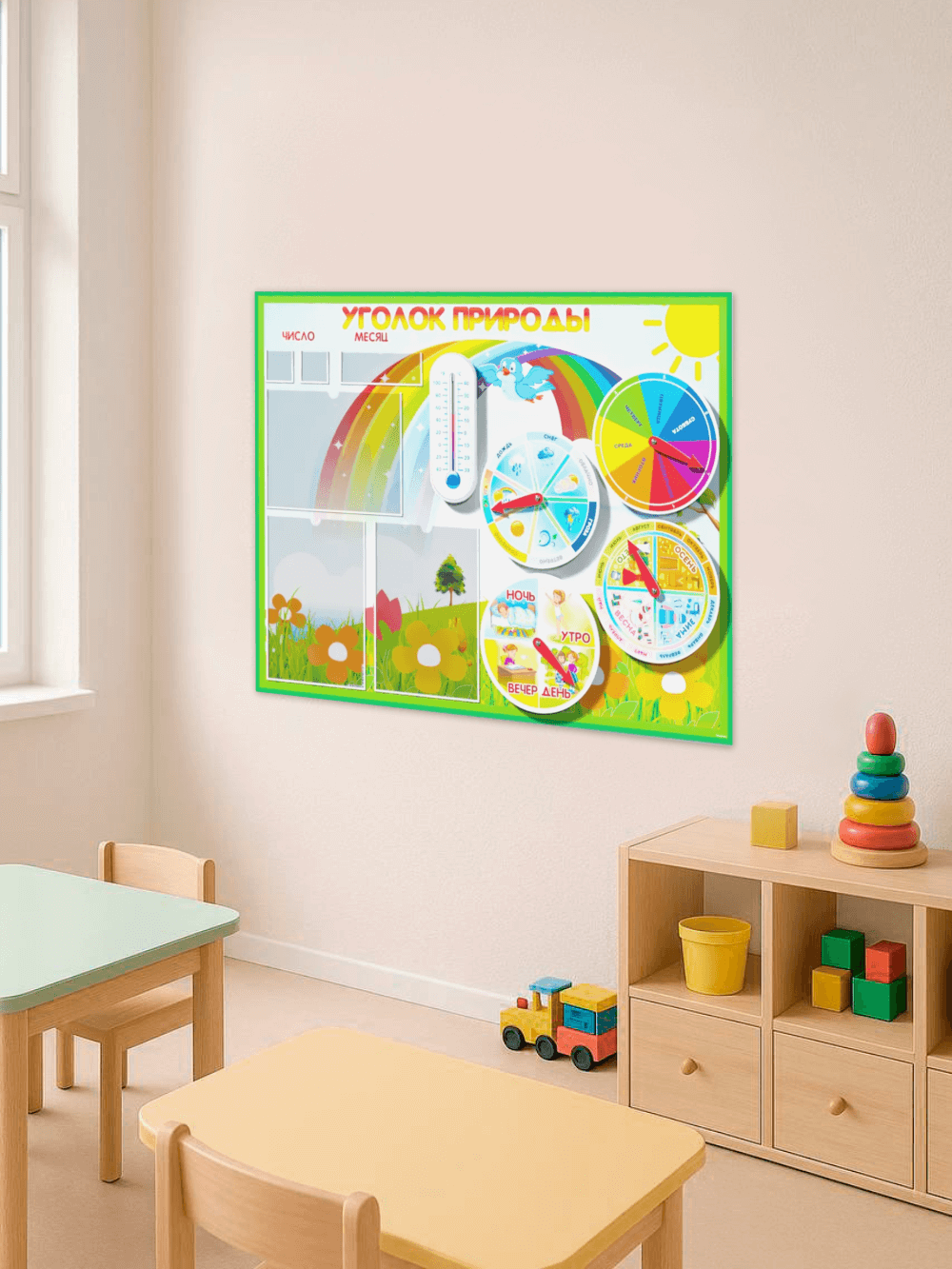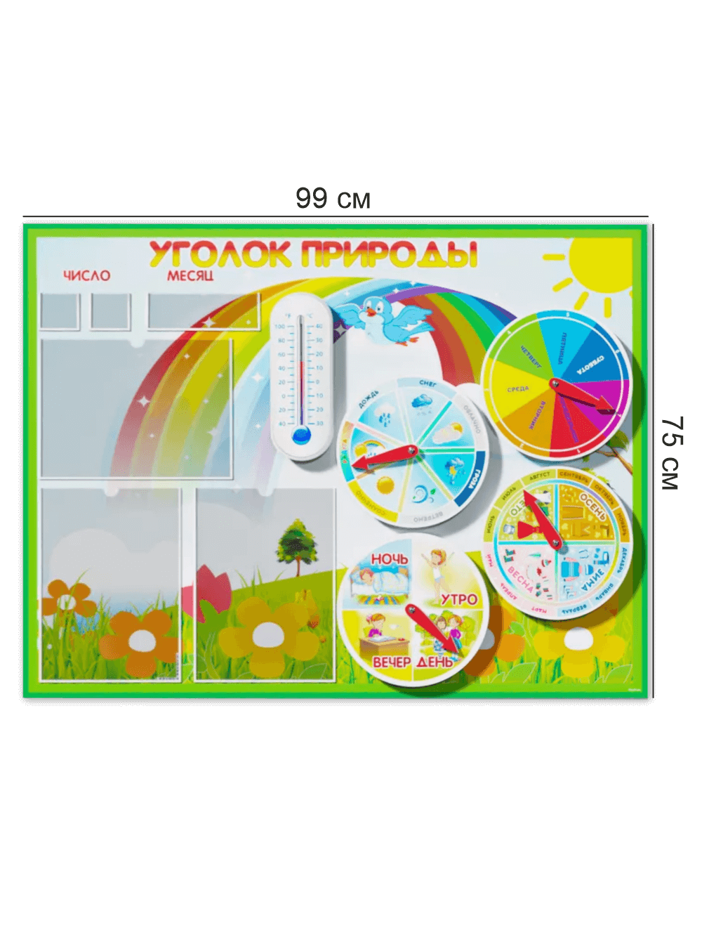 Стенды для детского сада и начальной школы. Стенды для детей это неотъемлемая часть помещений, в которых проводят время школьники и дошкольники. Детский стенд помогает малышам познавать мир, а школьникам и дошкольникам знакомится с историей и получать необходимые знания. Детские стенды яркие и обязательно привлекут к себе внимание. Стенд для детского сада предназначен для изучение времен года, дней недели, времени суток. На стенде уже есть 3 кармашка А4, которые уже приклеены на стенд, 2 кармашка 5/6 см и кармашек 1,8/6 см. В комплект также входят стрелки внутри кружков (уже вмонтированы в центр), специальный крепкий двусторонний скотч для удобного монтажа к стене. Такое оформление детского творчества придаст образовательному процессу атмосферу гармонии, веселья и повысит настроение малышей. Все изображения устойчивы к влаге и выгоранию, при необходимости можно мыть. Также изображения не сдираются и не царапаются. Все стенды имеют сертификат ГОСТ и изготовлены из нетоксичных материалов. Наши информационные стенды обязательно должны быть в Вашем интерьере! Если у Вас остались вопросы, задайте нам их и мы Вам обязательно ответим! Будем признательны, если после покупки Вы оставите нам отзыв с фото! Будем рады видеть Вас среди наших покупателей!