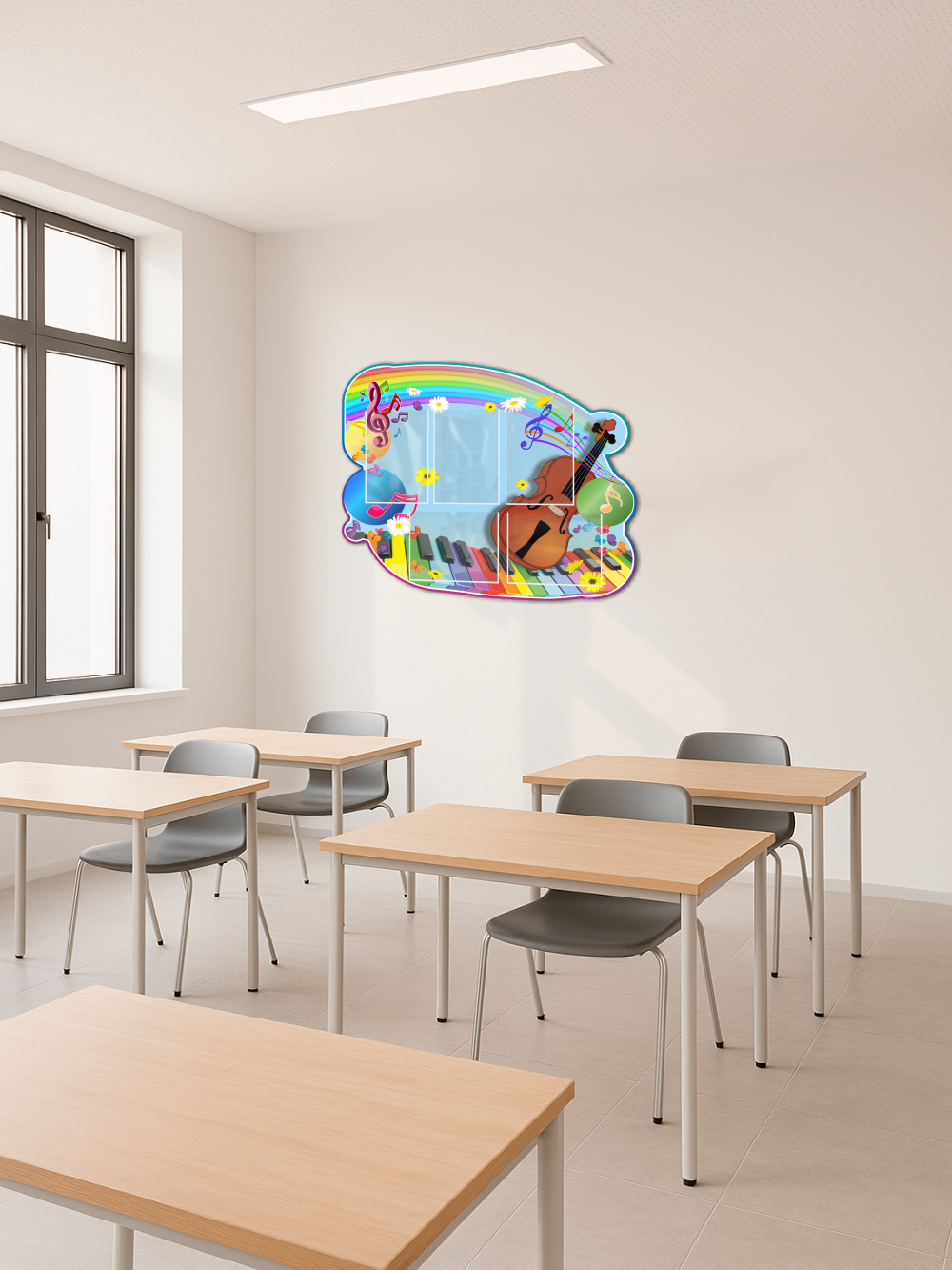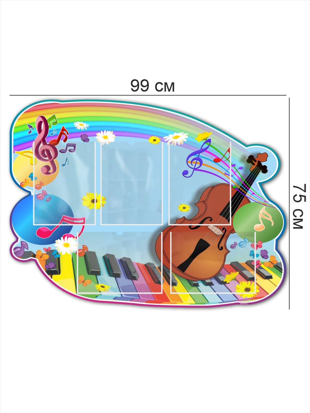 Стенд информационный в садик в музыкальный класс, в музыкальный зал изготовлен из ПВХ 3мм с приминением технологии прямой УФ печати по пластику, что делает стенд устойчивчм к выгоранию и влажности, так же стенд можно протирать от загрязнений влажно тряпкой или салфетками. На стенде – 2 горизонтальных кармана А4 и 3 вертикальных кармана А4. На обратной стороне стенда – двусторонняя клейкая лента для монтажа стенда на стену без сверления. Размер стенда – 99х75 см. Стенды для детского сада. Стенды для детей это неотъемлемая часть помещений, в которых проводят время школьники и дошкольники. Детский стенд помогает малышам познавать мир, а школьникам и дошкольникам знакомится с историей и получать необходимые знания. Детские стенды яркие и обязательно привлекут к себе внимание. Стенд «Информация для родителей» предназначен для информационно-справочных материалов для родителей в детском саду, а для малышей — выглядит веселым интересным украшением. Педагогическая пропаганда, развитие ребенка, вести с занятий, приказы, памятки, анкеты и прочие важные темы играют немаловажную роль в поддержании связи между администрацией/воспитателями детского сада и родителями. Все изображения устойчивы к влаге и выгоранию, при необходимости можно мыть. Также изображения не сдираются и не царапаются. Все стенды имеют сертификат ГОСТ и изготовлены из нетоксичных материалов. Наши информационные стенды обязательно должны быть в Вашем интерьере! Если у Вас остались вопросы, задайте нам их и мы Вам обязательно ответим! Будем признательны, если после покупки Вы оставите нам отзыв с фото! Будем рады видеть Вас среди наших покупателей!