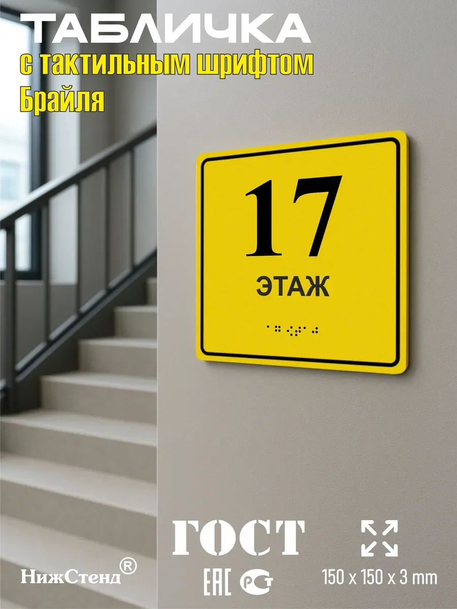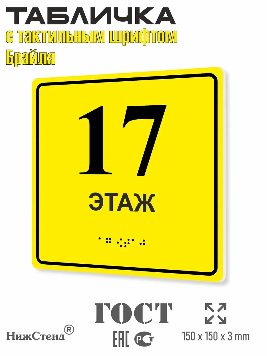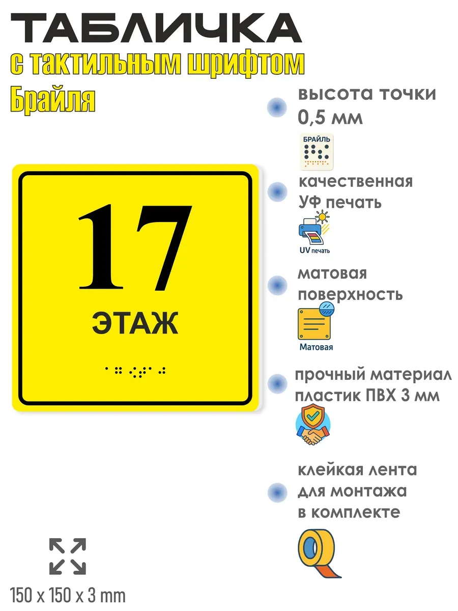 Тактильная табличка “17 этаж” со шрифтом Брайля (150×150 мм)