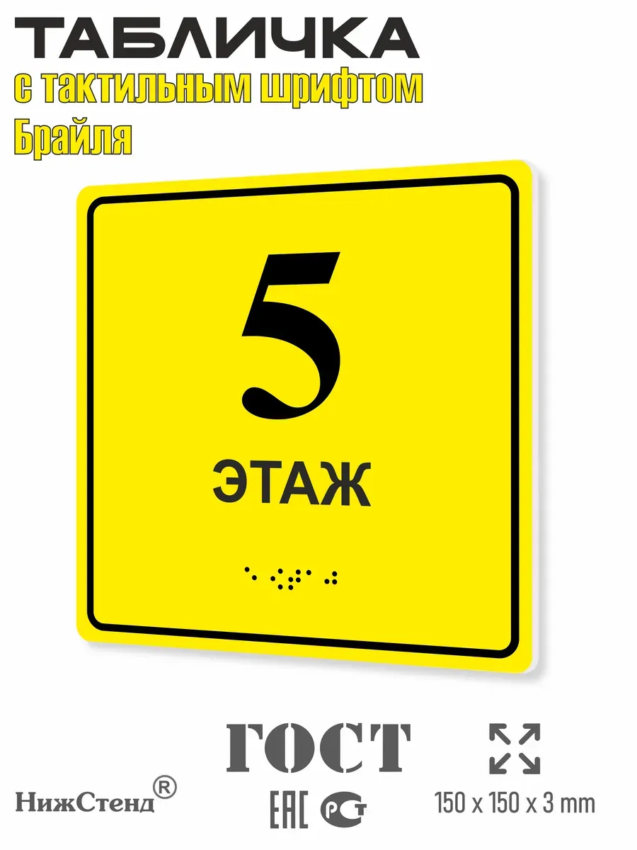 Тактильная табличка “5 этаж” со шрифтом Брайля (150×150 мм)