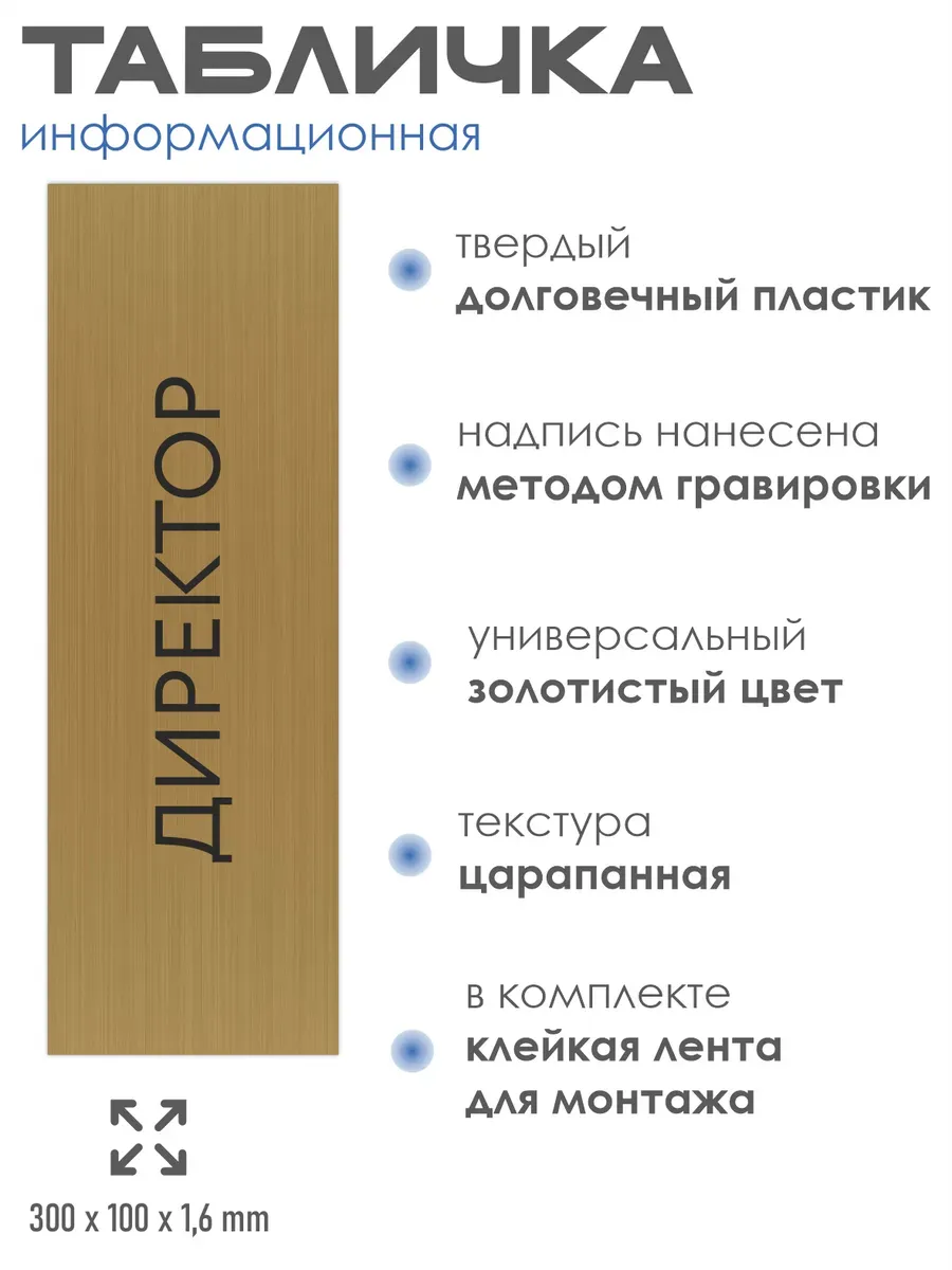 Будьте первым, кто оставил отзыв на “Табличка Директор золотая 30/10 см”