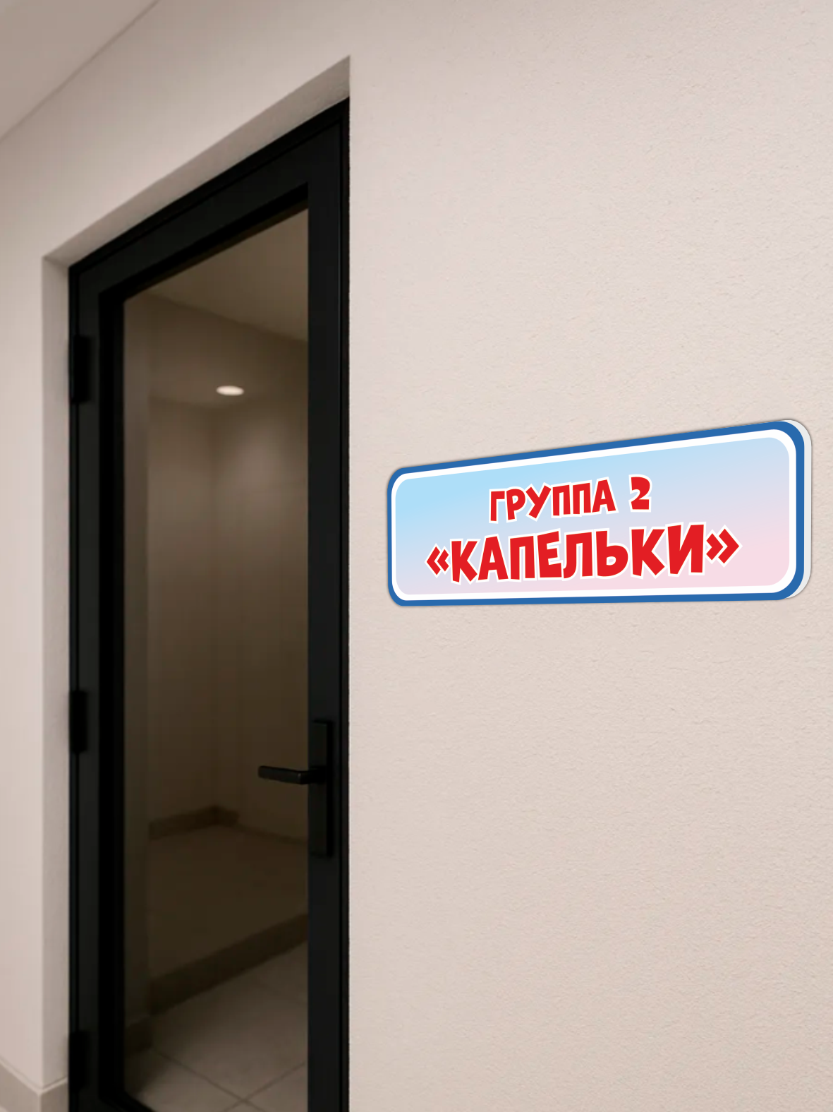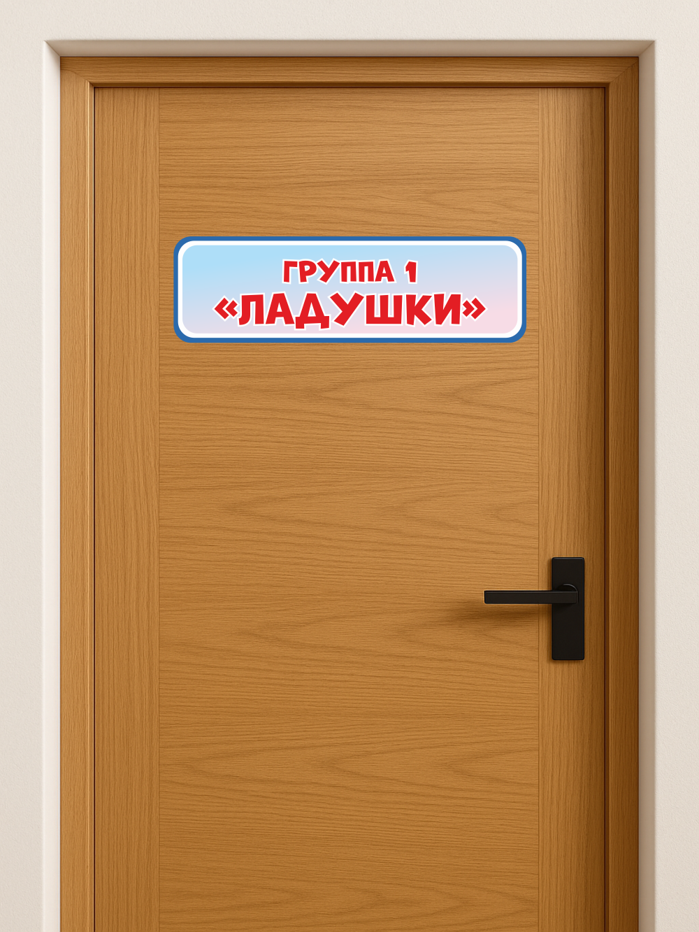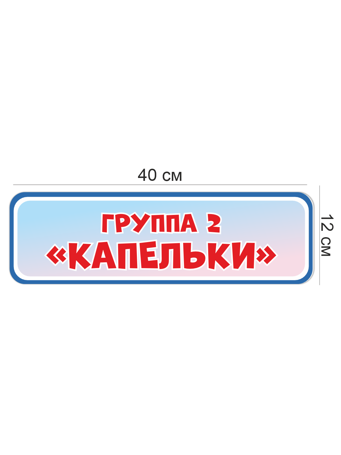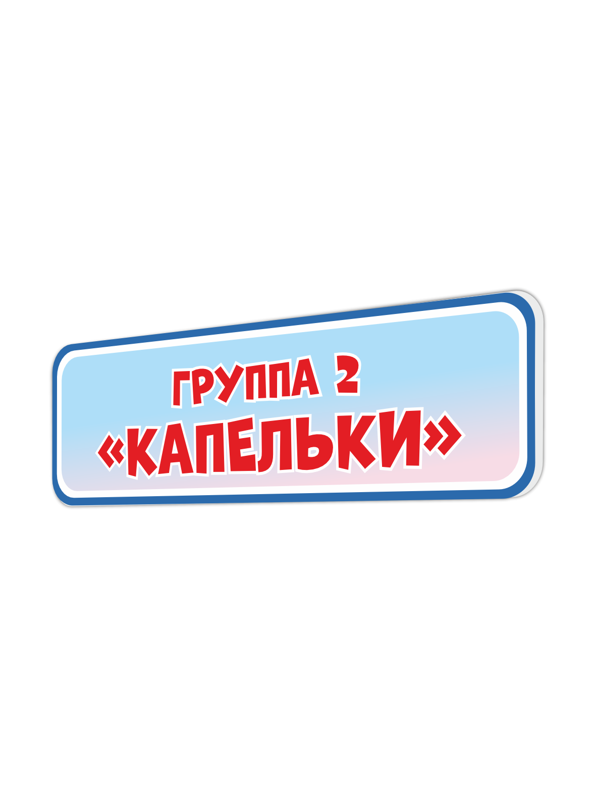 Изделие предназначено для оформления помещений детских садов — групп, раздевалок, игровых и спальных комнат. Надпись на табличке может быть любой — например, название группы или другое индивидуальное обозначение. Возможна печать собственного текста или макета по желанию заказчика.