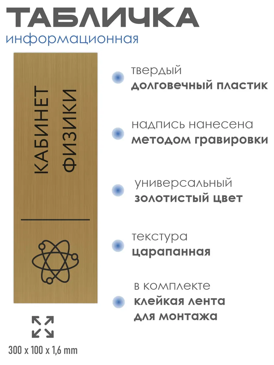 Табличка физика золотая 30/10 см