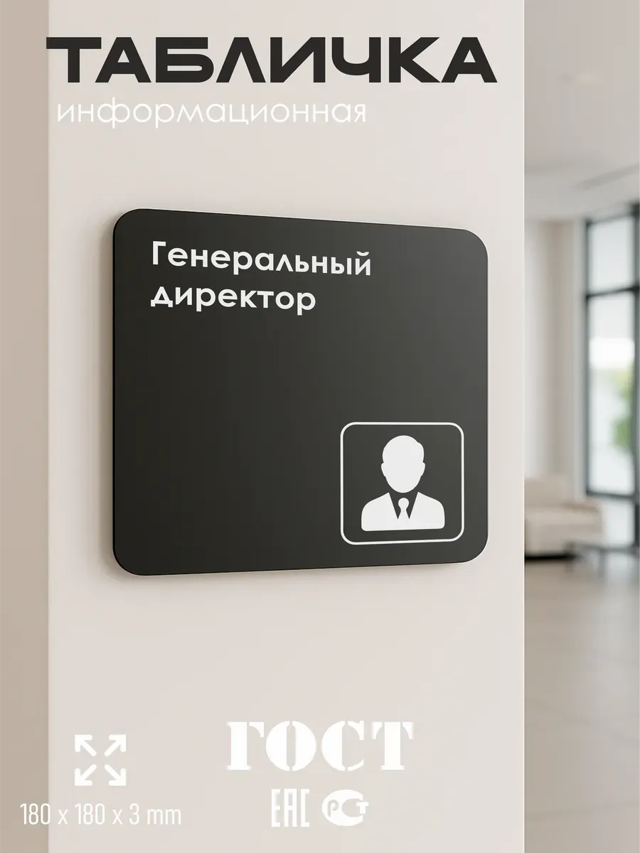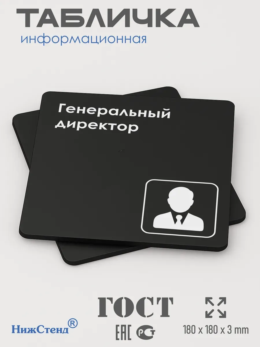 Будьте первым, кто оставил отзыв на “Табличка Генеральный директор 18х18 см”