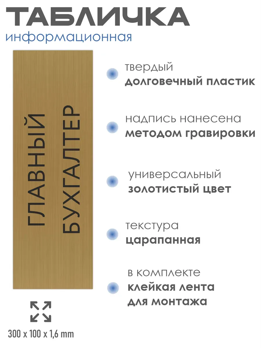 Будьте первым, кто оставил отзыв на “Табличка Главный бухгалтер золотая 30/10 см”