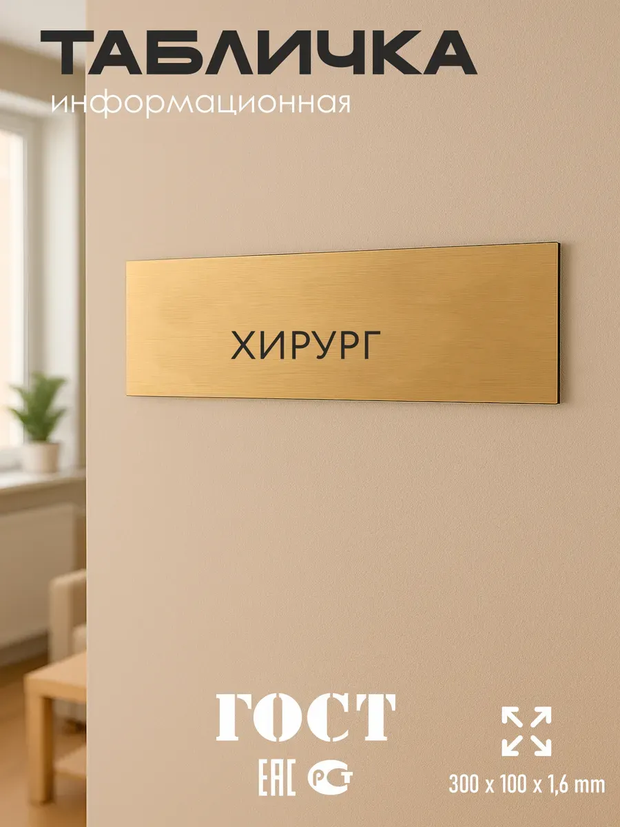 Табличка Хирург 300/100 мм на кабинет дверь стену золото