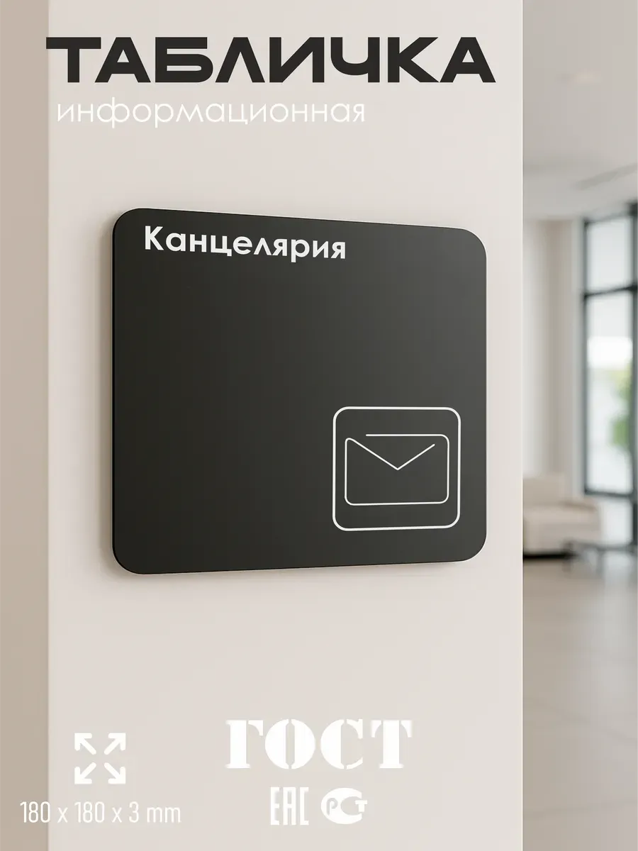 Табличка Канцелярия с двусторонней клейкой лентой для монтажа в комплекте интерьерная из черного ПВХ 3мм размером 30х10 см – это стильный и универсальный декоративный элемент, который поможет создать особую атмосферу в вашем интерьере. Изготовлена из высококачественного ПВХ, она обладает прочностью и долговечностью, что делает ее идеальным выбором для использования в различных помещениях. На табличке имеется возможность нанесения различных надписей, все представлены в ассортименте. Благодаря черному цвету и минималистичному дизайну, она легко сочетается с любым интерьером и стилем оформления. Эта табличка является универсальным решением для множества задач. Вы можете использовать ее для обозначения названий комнат, оповещения и предупреждения граждан. Она идеально подходит для дома, офиса, ресторана, гостиницы, в школу, в гос. учреждения, в клинику, в больницу, в фитнес клуб. В магазине представлены таблички с надписями: мужской туалет, женский туалет, офис, склад, место для курения, для персонала, курение запрещено, чистые бахилы, грязные бахилы, надевайте бахилы, женская раздевалка, мужская раздевалка, банкомат, бассейн, администрация, офис, буфет, камера хранения, прачечная, выключайте звуки телефона, туалет, комната матери и ребенка, вход, выход, генеральный директор, касса, информация, комната ожидания, не бросайте в унитаз туалетную бумагу и предметы гигиены, камера хранения, за оставленные вещи администрация ответственности не несет, ведется видеонаблюдение, выключайте звуки мобильного телефона