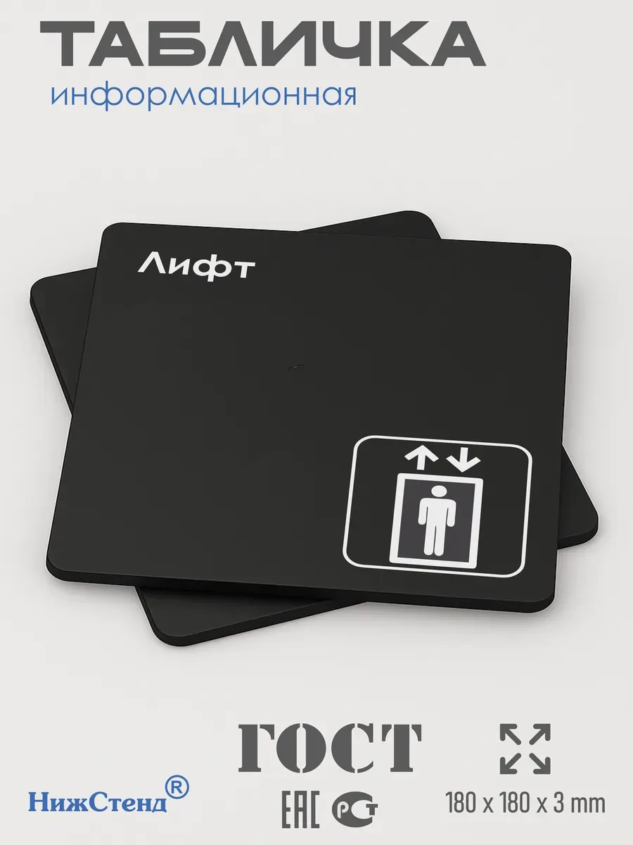 Табличка Лифт навигационная с двусторонней клейкой лентой для монтажа в комплекте директор интерьерная из черного ПВХ 3мм размером 18х18 см – это стильный и универсальный декоративный элемент, который поможет создать особую атмосферу в вашем интерьере. Изготовлена из высококачественного ПВХ, она обладает прочностью и долговечностью, что делает ее идеальным выбором для использования в различных помещениях. На табличке имеется возможность нанесения различных надписей, все представлены в ассортименте. Благодаря черному цвету и минималистичному дизайну, она легко сочетается с любым интерьером и стилем оформления. Эта табличка является универсальным решением для множества задач. Вы можете использовать ее для обозначения названий комнат, оповещения и предупреждения граждан. Она идеально подходит для дома, офиса, ресторана, гостиницы, в школу, в гос. учреждения, в клинику, в больницу, в фитнес клуб. В магазине представлены таблички с надписями: мужской туалет, женский туалет, офис, склад, место для курения, для персонала, курение запрещено, чистые бахилы, грязные бахилы, надевайте бахилы, женская раздевалка, мужская раздевалка, банкомат, бассейн, администрация, офис, буфет, камера хранения, прачечная, выключайте звуки телефона, туалет, комната матери и ребенка, вход, выход, генеральный директор, касса, информация, комната ожидания, не бросайте в унитаз туалетную бумагу и предметы гигиены, камера хранения, за оставленные вещи администрация ответственности не несет, ведется видеонаблюдение, выключайте звуки мобильного телефона