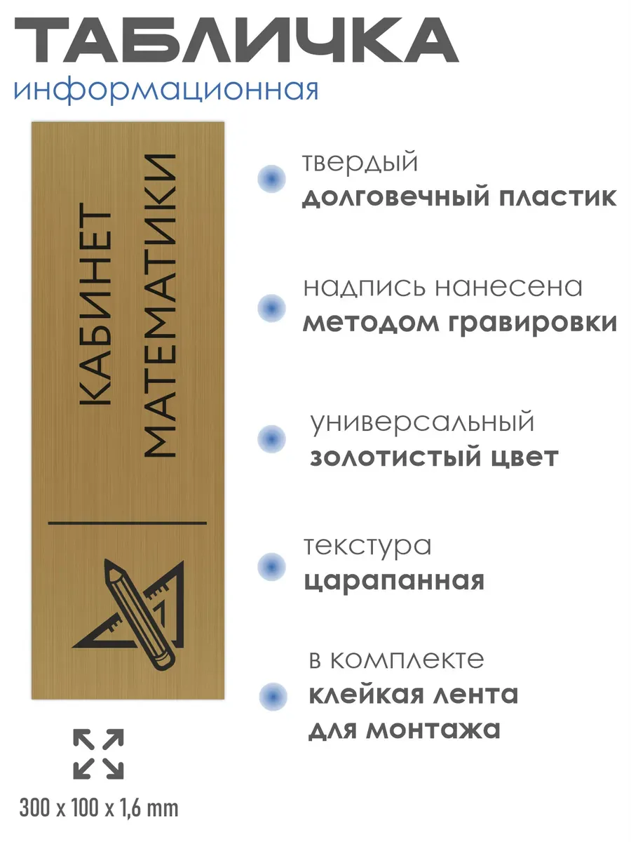 Будьте первым, кто оставил отзыв на “Табличка математика 30/10 см золотая”