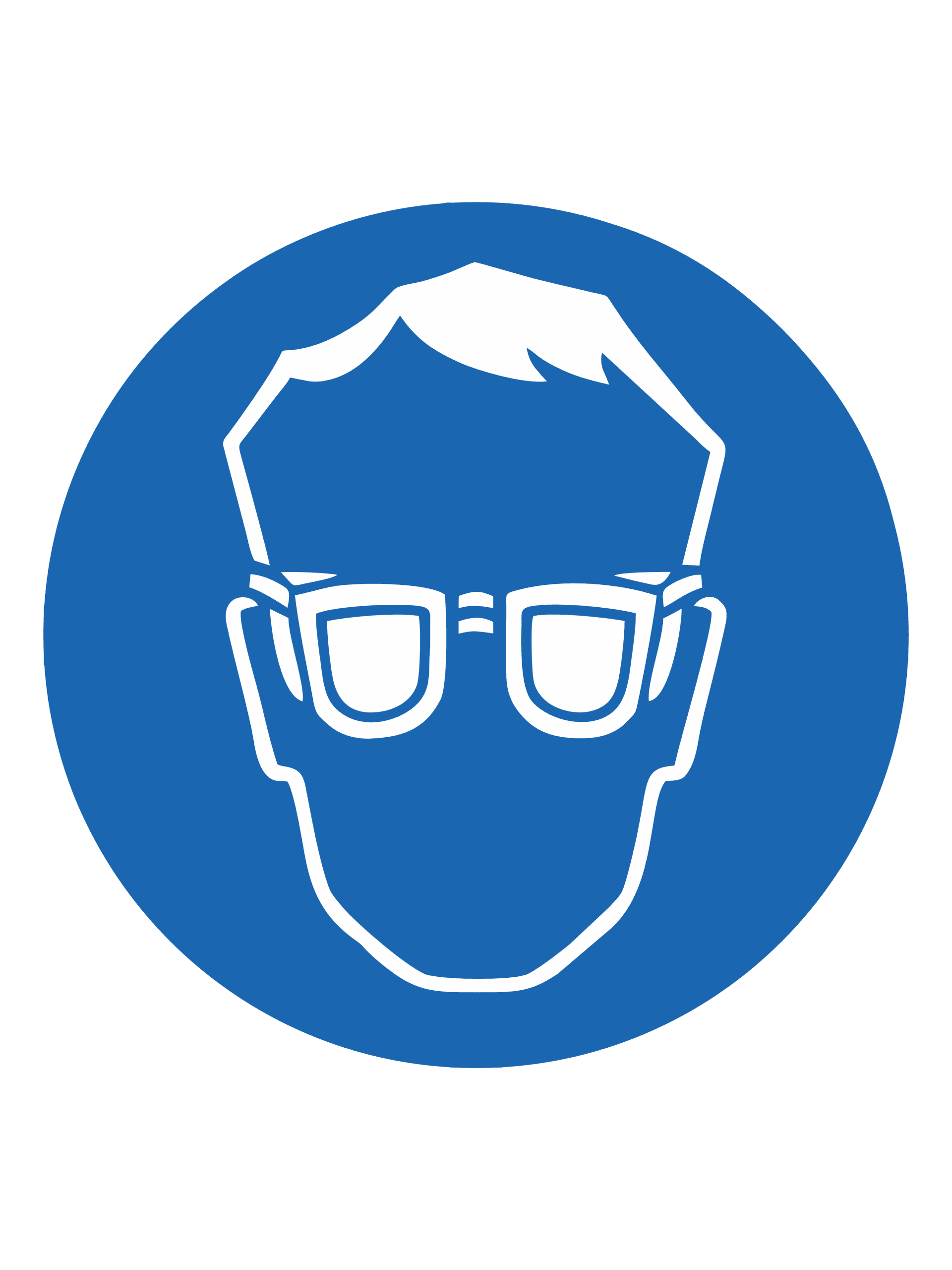 Знак обязывает использовать защитные очки для предотвращения травм глаз при работе в условиях, где есть риск попадания мелких частиц, искр, стружки, химических капель, аэрозолей или интенсивного света.