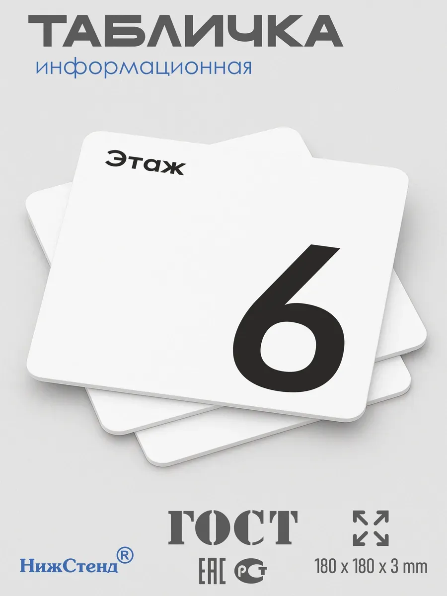 Табличка шестой 6 этаж с двусторонней клейкой лентой для монтажа в комплекте директор интерьерная из ПВХ 3мм размером 18х18 см – это стильный и универсальный декоративный элемент, который поможет создать особую атмосферу в вашем интерьере. Изготовлена из высококачественного ПВХ, она обладает прочностью и долговечностью, что делает ее идеальным выбором для использования в различных помещениях. На табличке имеется возможность нанесения различных надписей, все представлены в ассортименте. Благодаря белому цвету и минималистичному дизайну, она легко сочетается с любым интерьером и стилем оформления. Эта табличка является универсальным решением для множества задач. Вы можете использовать ее для обозначения названий комнат, оповещения и предупреждения граждан. Она идеально подходит для дома, офиса, ресторана, гостиницы, в школу, в гос. учреждения, в клинику, в больницу, в фитнес клуб. В магазине представлены таблички с надписями: мужской туалет, женский туалет, офис, склад, место для курения, для персонала, курение запрещено, чистые бахилы, грязные бахилы, надевайте бахилы, женская раздевалка, мужская раздевалка, банкомат, бассейн, администрация, офис, буфет, камера хранения, прачечная, выключайте звуки телефона, туалет, комната матери и ребенка, вход, выход, генеральный директор, касса, информация, комната ожидания, не бросайте в унитаз туалетную бумагу и предметы гигиены, камера хранения, за оставленные вещи администрация ответственности не несет, ведется видеонаблюдение, выключайте звуки мобильного телефона