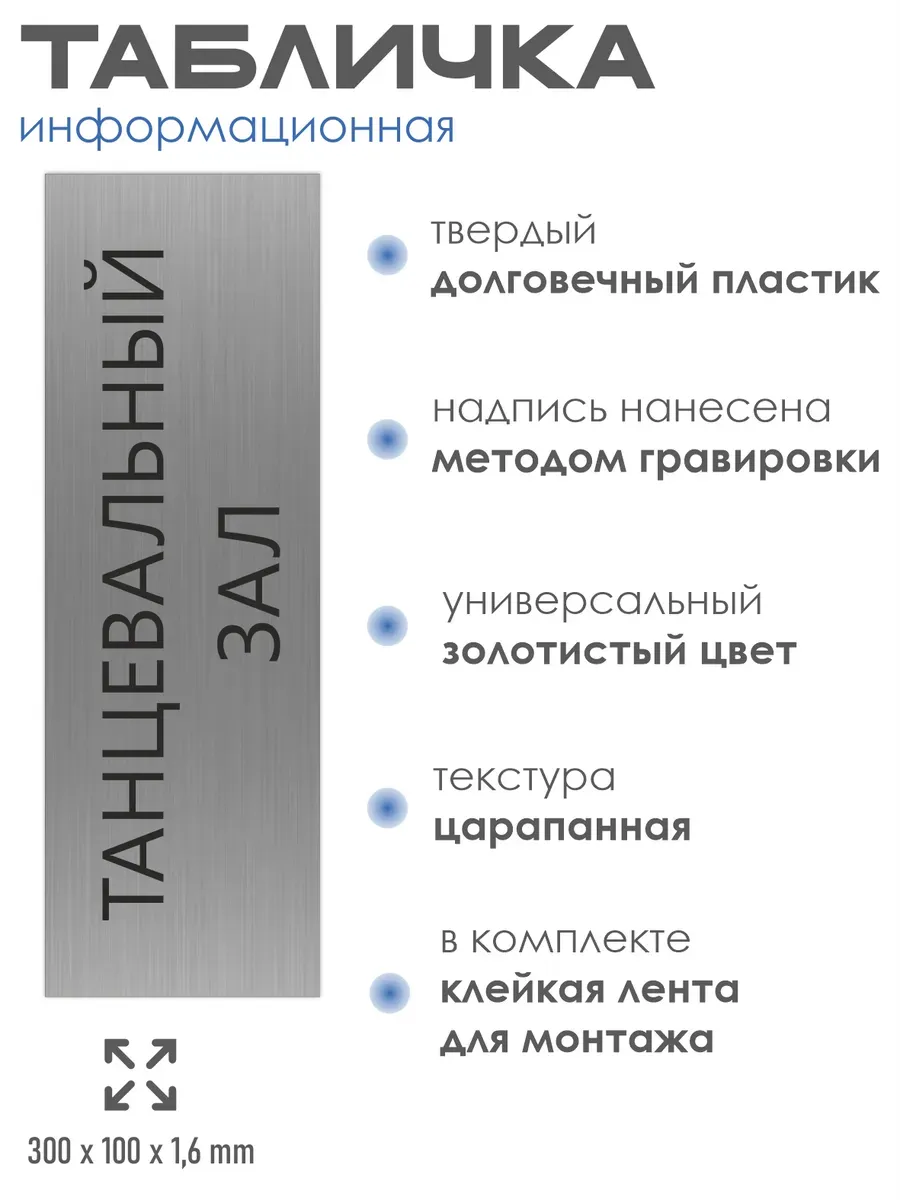 Будьте первым, кто оставил отзыв на “Табличка танцевальный зал 30/10 см серебряная”