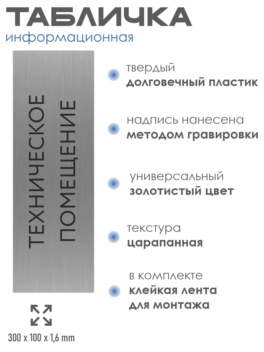 Будьте первым, кто оставил отзыв на “Табличка техническое помещение серебряная 30/10 см”
