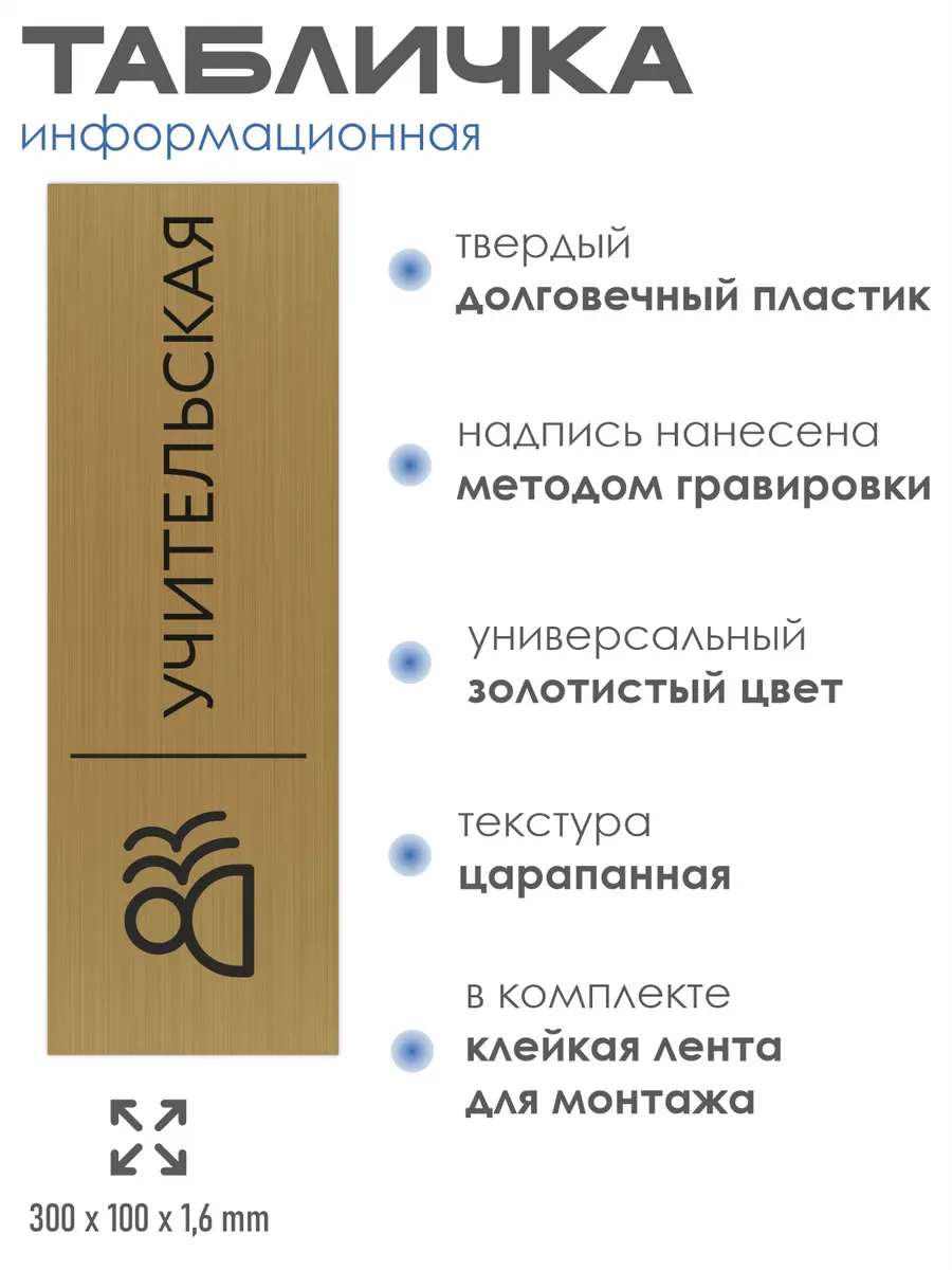 Будьте первым, кто оставил отзыв на “Табличка учительская золото на стену дверь 30/10 см”