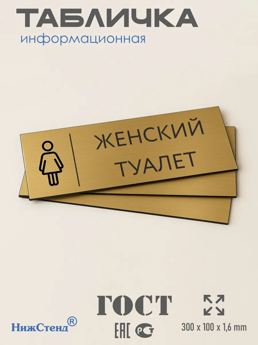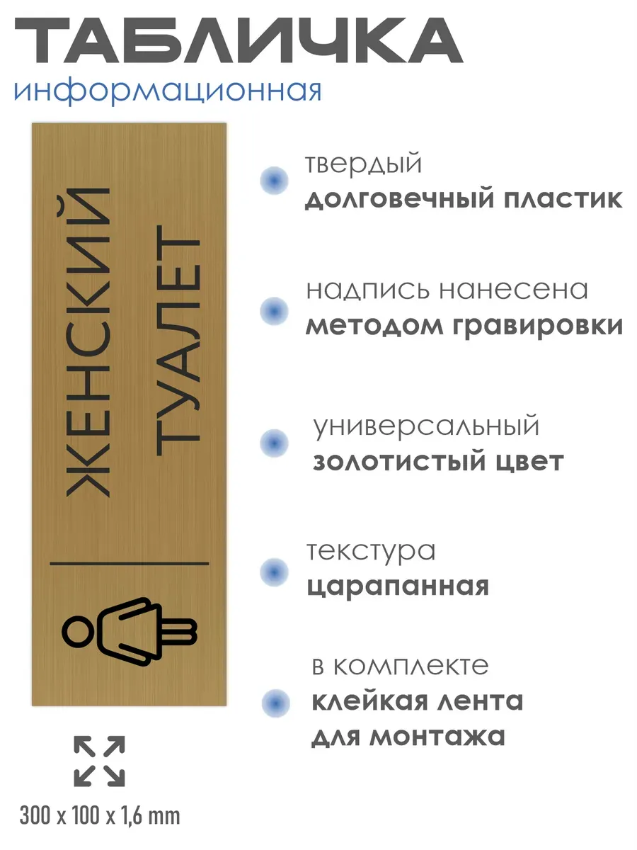 Будьте первым, кто оставил отзыв на “Табличка Женский туалет золотая 30/10 см”