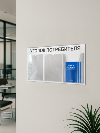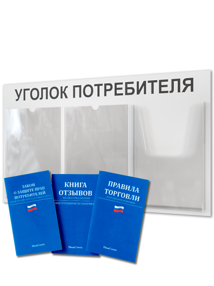 Уголок потребителя для ПВЗ для пунктов выдачи заказов с комплектом литературы актуальной на 2025 год от Нижстенд – это практичное и стильное решение для организации пространства для юридической информации в любом коммерческом помещении. Стенд изготовлен из прочного и долговечного ПВХ толщиной 3мм, размер стенда – 75х40 см. На стенде – 2 плоских кармана формата А4 и один объемный карман глубиной 3 см формата А4. В комплекте двусторонняя клейкая лента на обратной стороне стенда для его монтажа на стену без сверления и 3 книги: закон о защите прав потребителей. новые правила торговли и книга отзывов, жалоб и предложений. Вся литература в обновленной редакции. Уголок потребителя отличается высоким качеством и лаконичным дизайном. Он станет незаменимым помощником для размещения важной информации, объявлений, графиков или напоминаний, обеспечивая порядок и удобство. Его компактный размер и универсальность позволяют использовать его в различных помещениях, а прочная конструкция гарантирует длительный срок службы. Уголок потребителя Нижстенд – это оптимальное сочетание функциональности, надежности и современного дизайна.