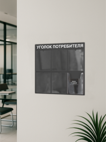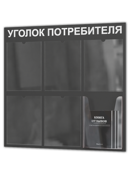 Уголок потребителя 2025 с комплектом литературы актуальной на 2025 год из ПВХ 3мм с 5 плоскими карманами формата А4 и одним объемным карманом формата А4 с двусторонней клейкой лентой для монтажа. В комплекте 3 книги: книга отзывов, жалоб и предложений; новые правила торговли; закон о защите прав потребителей. В соответствии с законом РФ “О защите прав потребителей” в каждом торговой точке, размещенной на территории РФ, должна иметься информация об изготовителе (исполнителе, продавце) и о товарах . Уголок потребителя настенный – это специальное место, где должна быть размещена информация, которая подтвердит, что продавец имеет право продавать, а исполнитель может на законных основаниях оказывать ту или иную услугу. Размер стенда 750х750 мм. Уголок информации имеет 6 карманов : 5 плоских А4 и один объемный карман А4. Мы предлагаем качественные уголки для покупателей, которые прослужат долго, ведь они не выгорают и устойчивы к влаге. Стенд информационный с карманами станет удачным дополнением в офис, в салон красоты, в магазин. Стенд информация представлен в разной цветовой гамме. Дизайны наших информационных стендов обязательно привлекут к себе внимание и отлично дополнят интерьер в торговом зале и любом другом помещении. Предприниматели размещают в уголке потребителя: 1. Информация о продавце или исполнителе. 2. Нормативно-правовые акты РФ. 3. Документы, которые зависят от вида бизнеса. 4. Прочие документы: Книга жалоб и предложений. Перечень контролирующих и надзорных органов с адресами и телефонами. Порядок обслуживания льготных категорий граждан. План эвакуации и правила пожарной безопасности. Покупайте официальные издания, чтобы не рисковать. Все тексты в уголке потребителя должны быть на русском языке. Набор книг для стенда потребителя на стену самого свежего издания идет в комплекте со стендом. В комплект входят книги: закон о защите прав потребителя, книга отзывов, жалоб и предложений, новые правила торговли.