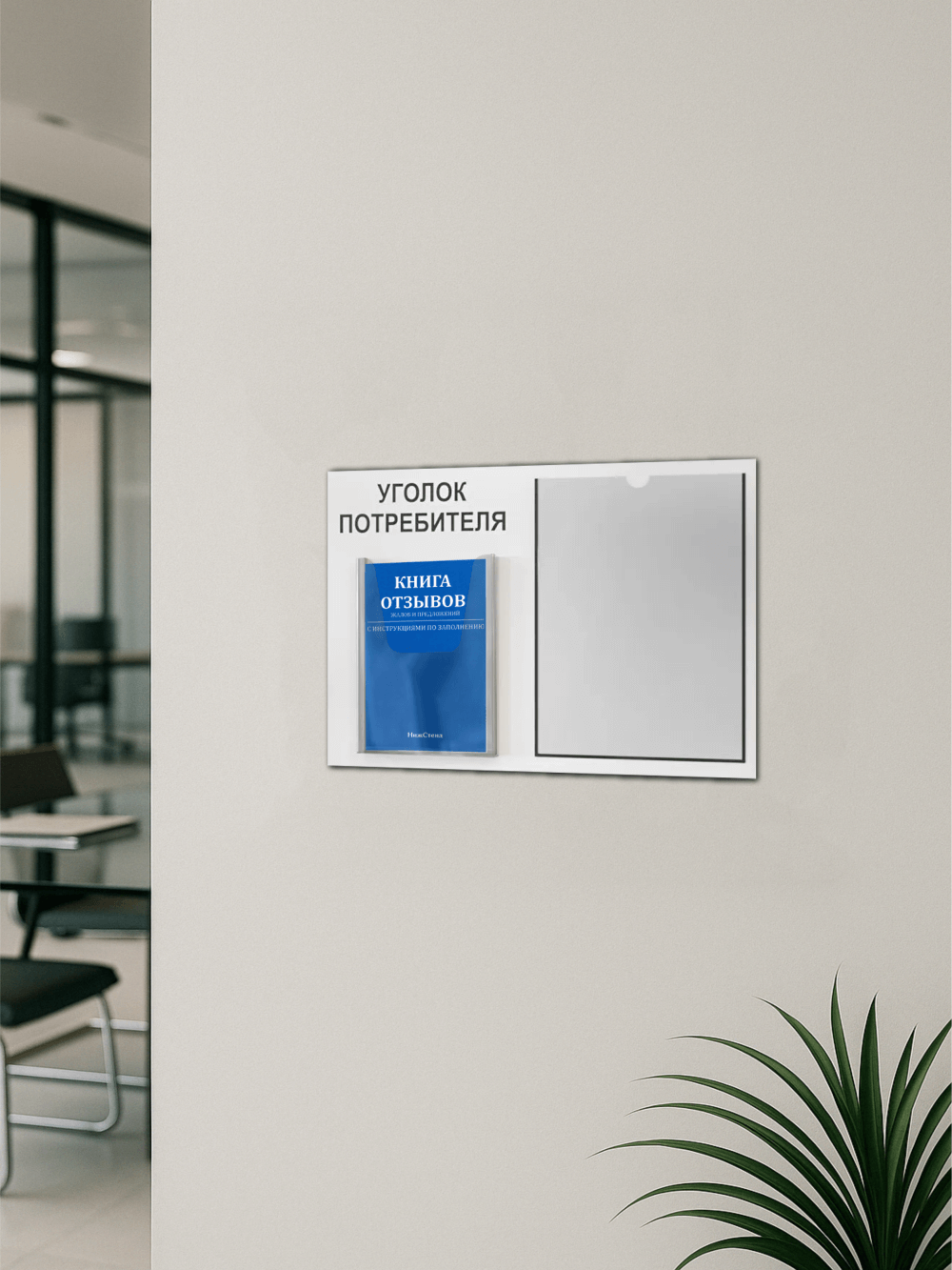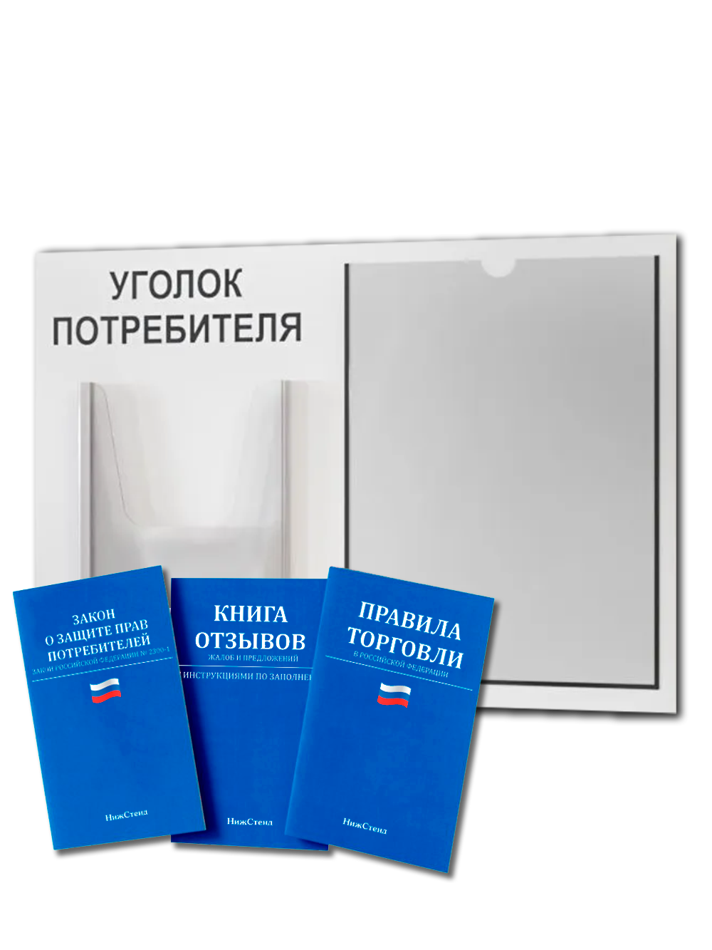 Уголок потребителя предоставляет всю необходимую информацию о Вашей компании, товарах или услугах и повышает доверие клиентов. Мы предлагаем такой информационный стенд НАПРЯМУЮ ОТ ПРОИЗВОДИТЕЛЯ. Уголок для потребителя 2025 подходит для различных организаций, включая ИП и ООО. Размер информационного стенда: 34*49 см. Настенный информационный уголок имеет 2 кармана : 1 плоский А4 и один объемный карман А5. Изготовлен из качественных и прочных материалов, что обеспечивает его долговечность и сохранность информации. Стильный дизайн и разнообразие цветовых решений позволяют подобрать стенд из оргстекла, который идеально впишется в интерьер Вашего офиса или магазина. В КОМПЛЕКТЕ идет двусторонний скотч для монтажа стенда к стене (не требуется просверливать отверстия для монтажа). В ПОДАРОК ВЫ ПОЛУЧИТЕ КНИГИ: закон о защите прав потребителя, книга отзывов, жалоб и предложений, новые правила торговли. Все книги в обновленной редакции 2025 года. Продукция ООО НИЖСТЕНД – это всегда выгодные цены и гарантия качества стендов, их долговечности, устойчивости к выгоранию и влаге.