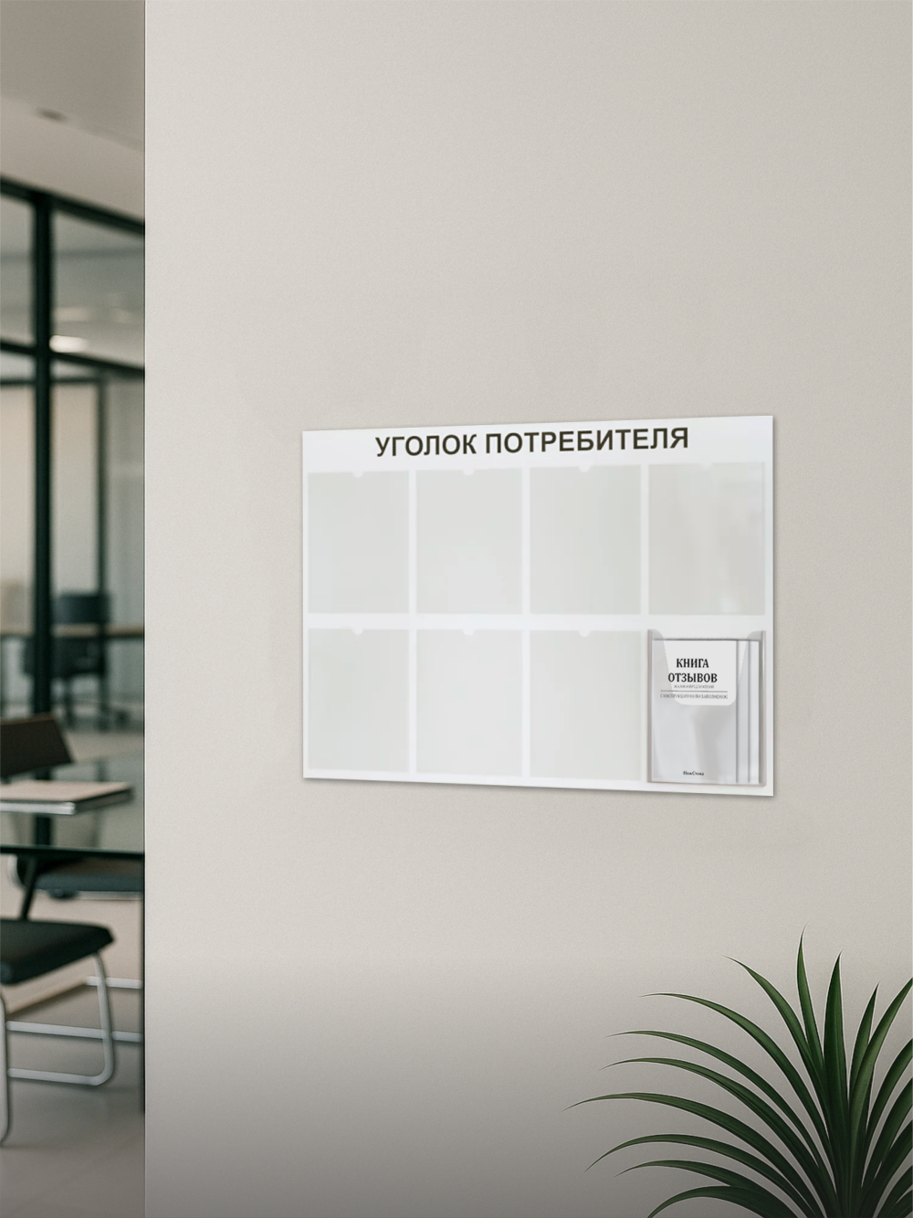 Уголок потребителя с комплектом литературы – это практичное и стильное решение для организации информации в офисных и коммерческих помещениях.