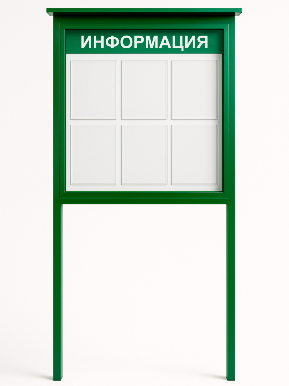 Надёжный уличный информационный стенд из металла с долговечной порошковой окраской, устойчивой к влаге, солнцу и перепадам температуры. Идеально подходит для размещения объявлений, расписаний, графиков и другой информации на территории школ, детских садов, предприятий, ТСЖ и административных зданий.