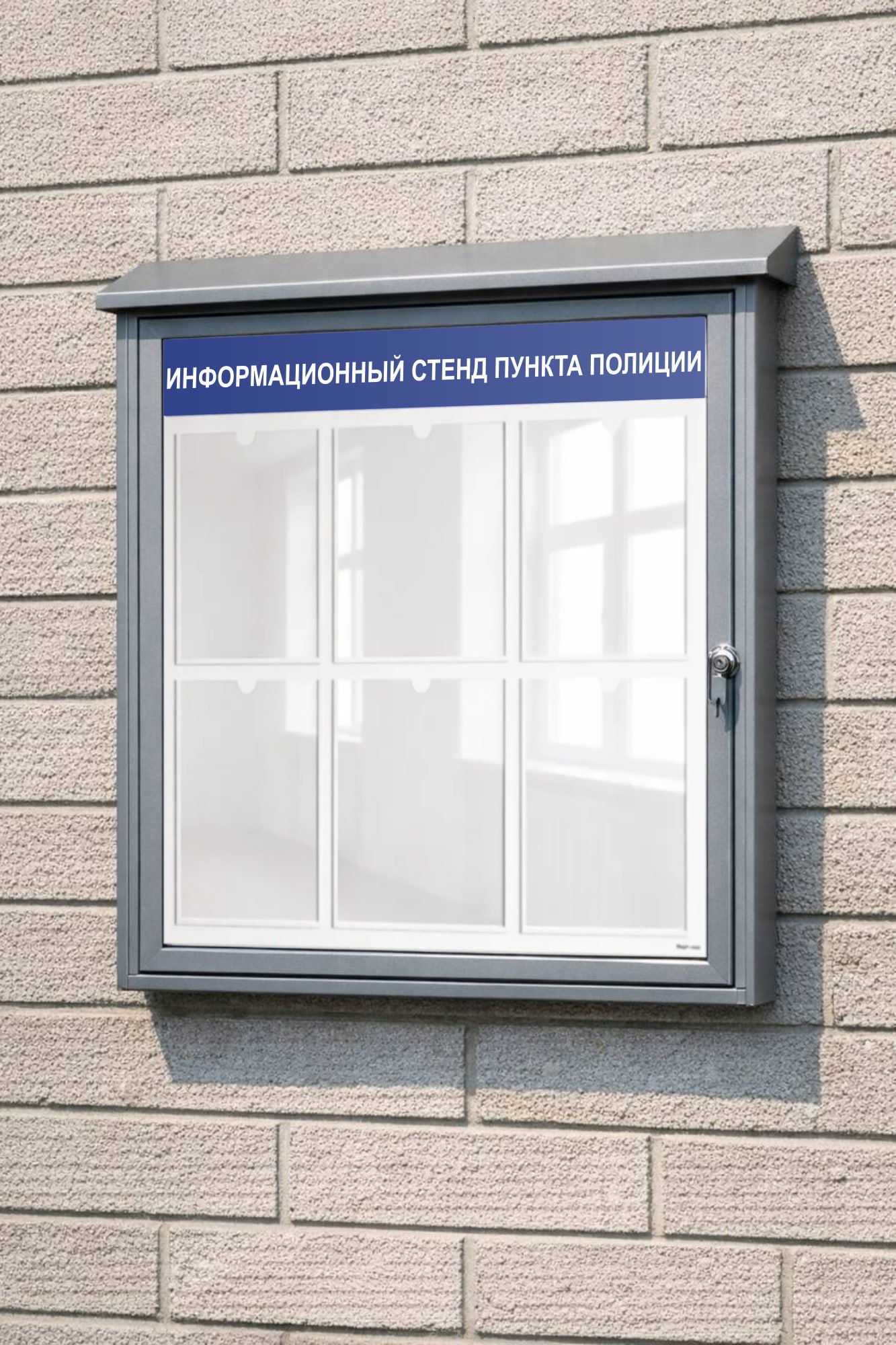 Информационный стенд предназначен для размещения официальной информации в пунктах полиции, участковых опорных пунктах и административных зданиях. Используется для информирования граждан о графике работы, контактах, нормативных документах и объявлениях.